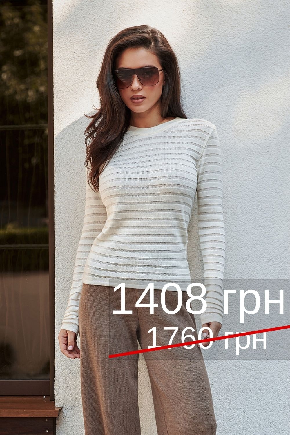 Актуальна горизонтальна об'ємна смужка. Класична комфортна кругла горловина.