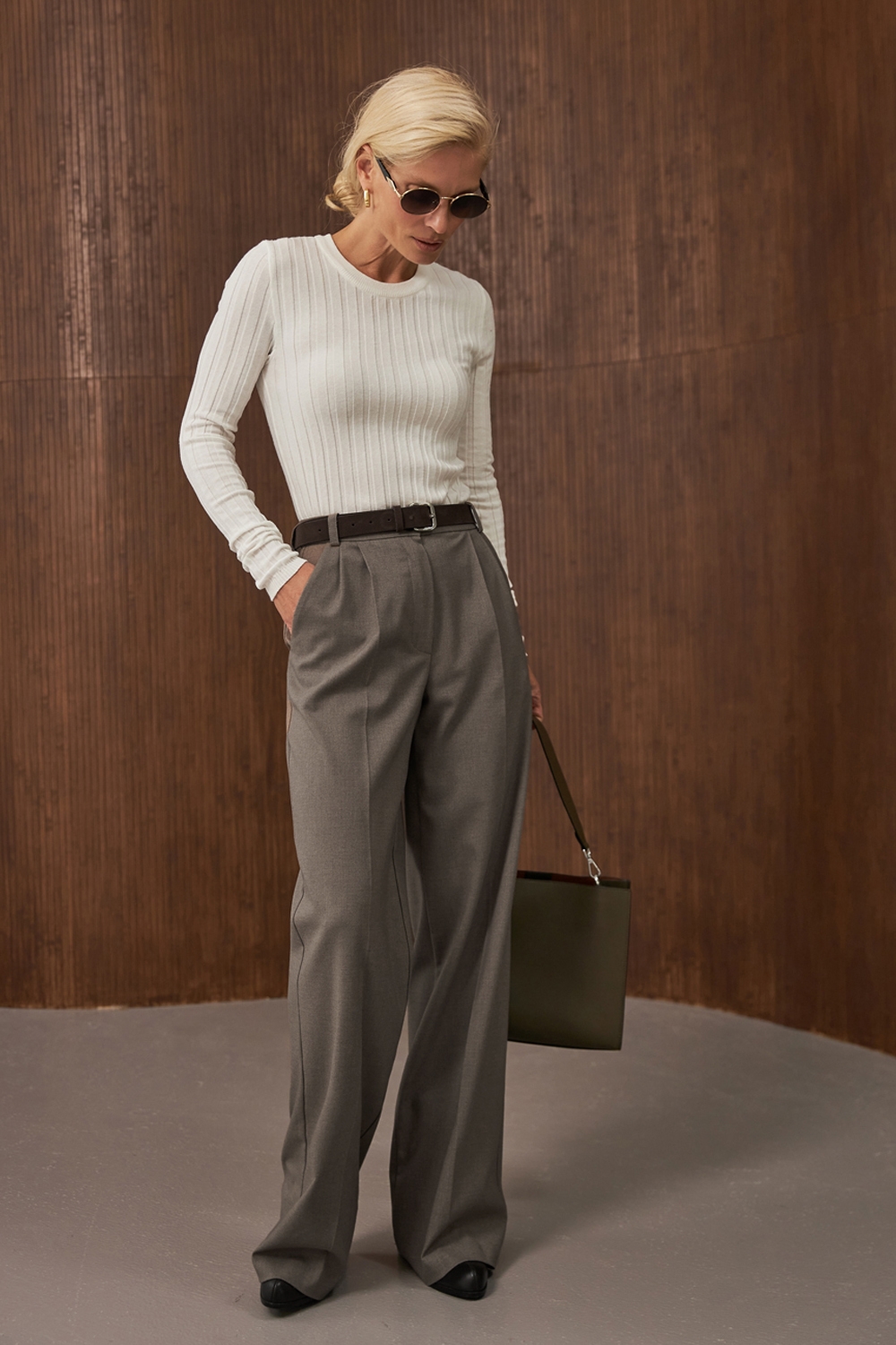 Витончений лонгслів зі стабільної в’язки зі шовковистої бавовняно-бамбукової пряжі. Модель еластична, м’яко прилягає до фігури. Фактурні вертикальні смужки візуально подовжують силует.