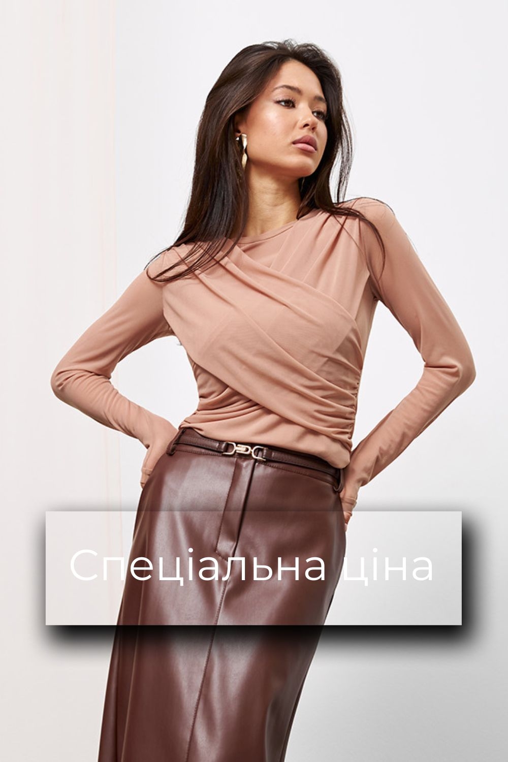 Лонгслів з ніжної приємної на дотик тканини-сітки. Симетричне драпірування по ліфу. Тонкий еластичний виріб напівприлеглого силуету.
