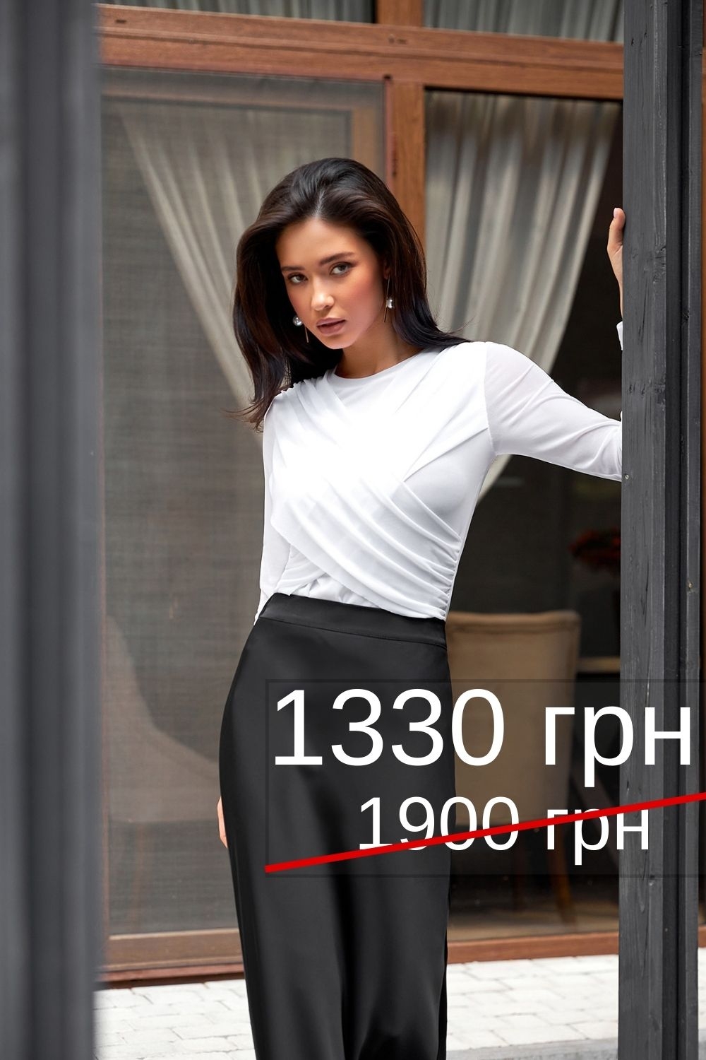 Лонгслів з ніжної приємної на дотик тканини-сітки. Симетричне драпірування по ліфу. Тонкий еластичний виріб напівприлеглого силуету.