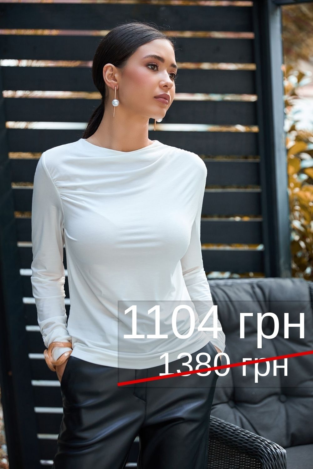 Лонгслів з драпіруванням з ніжної еластичної приємної до тіла тканини з включенням віскози. Приталений крій, охайний низ виробу, декорований рукав.