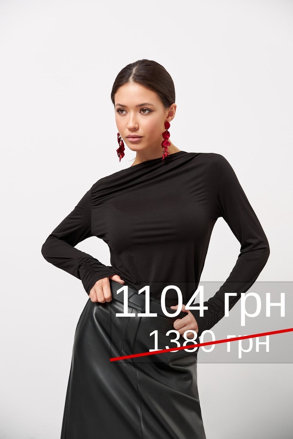 Лонгслів з драпіруванням з ніжної еластичної приємної до тіла тканини з включенням віскози. Приталений крій, охайний низ виробу, декорований рукав.