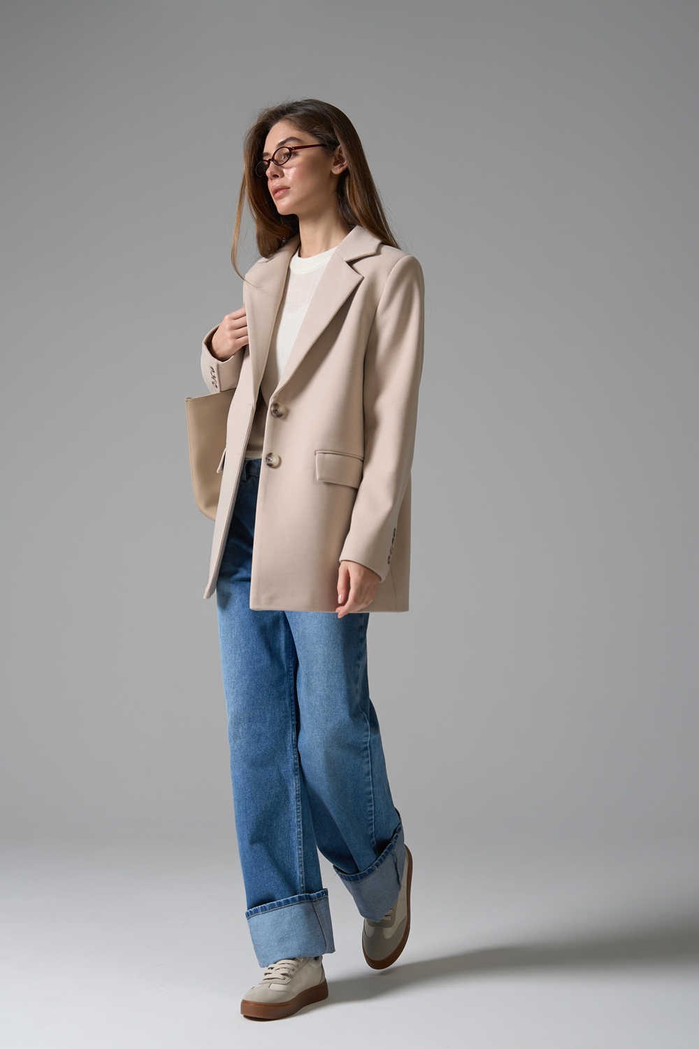 Трендове напівпальто в стилі Oversize. Виготовлене з м'якою тканини з високим вмістом вовни та кашеміру.