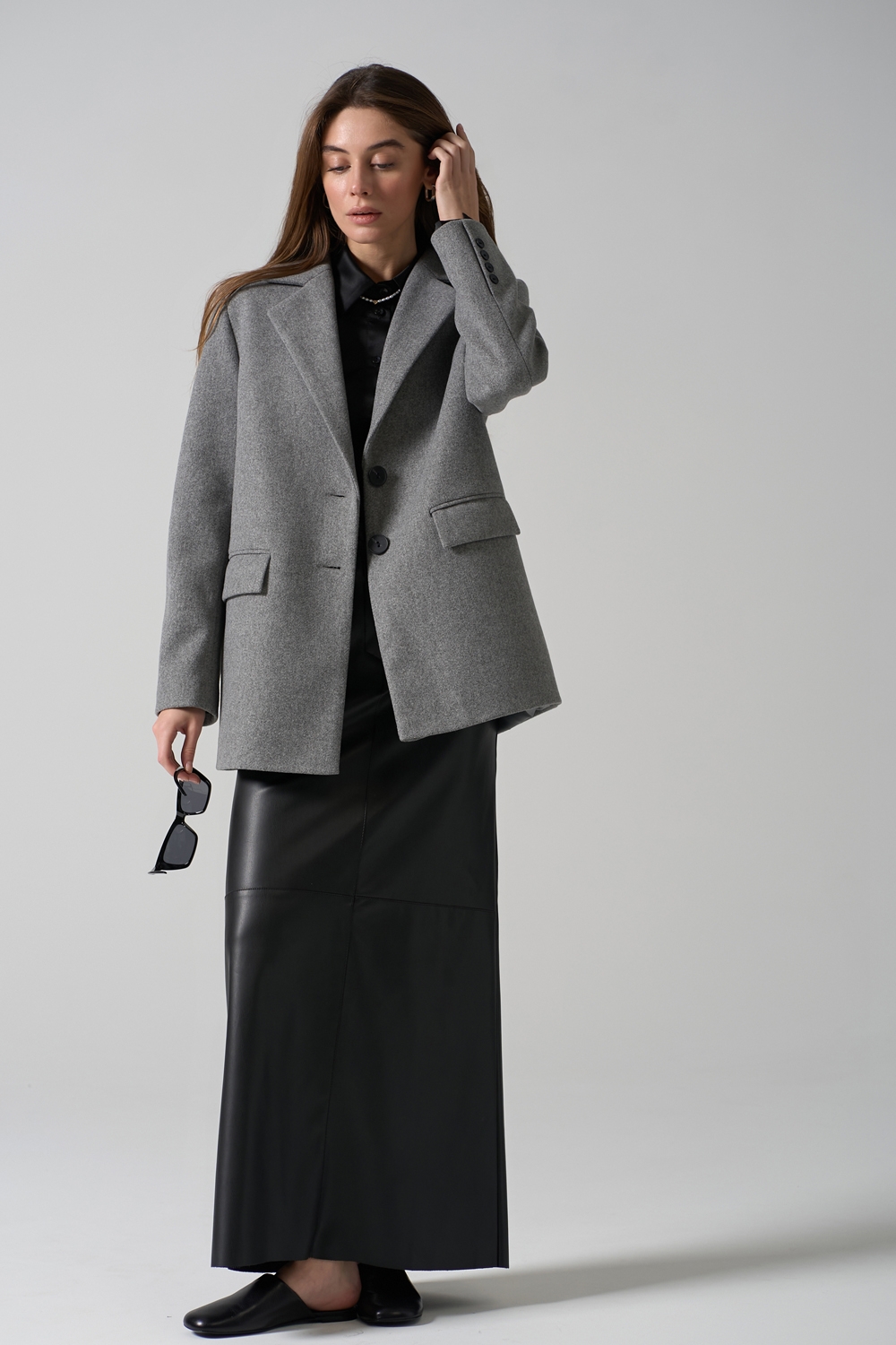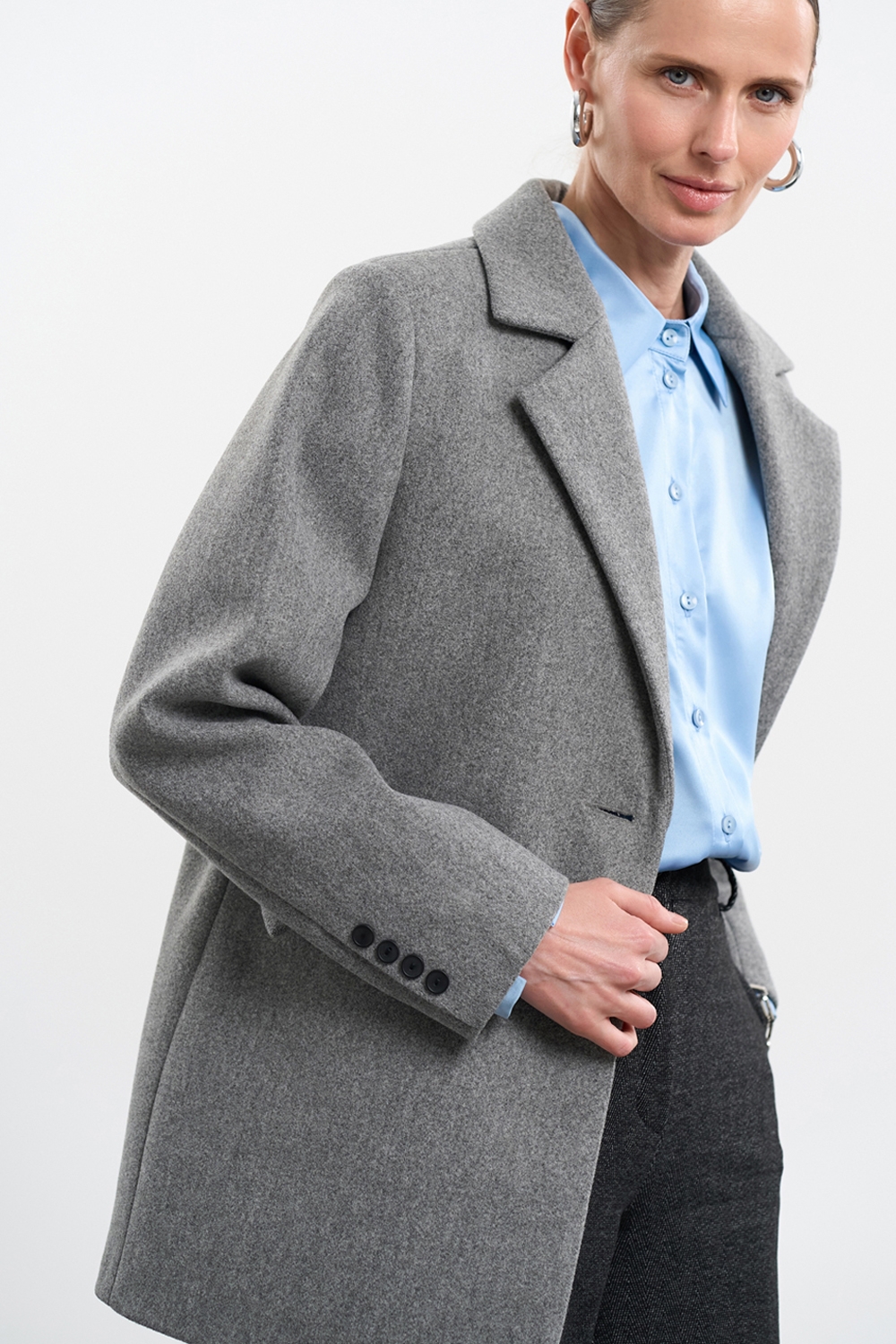 Трендове напівпальто в стилі Oversize. Виготовлене з м'якою тканини з високим вмістом вовни та кашеміру.