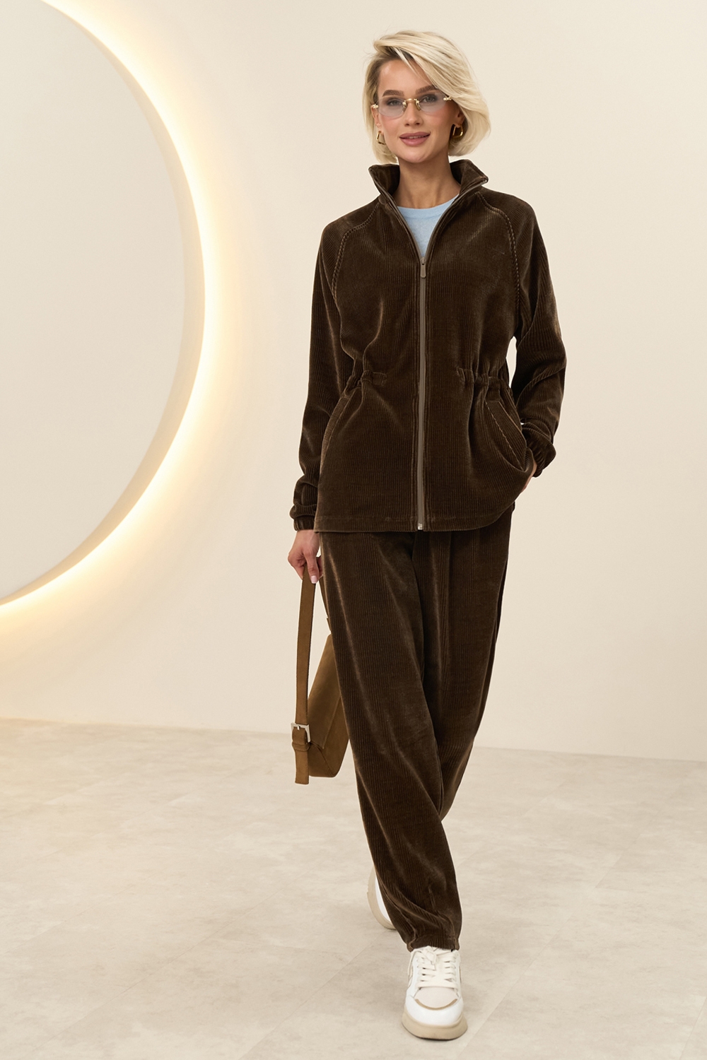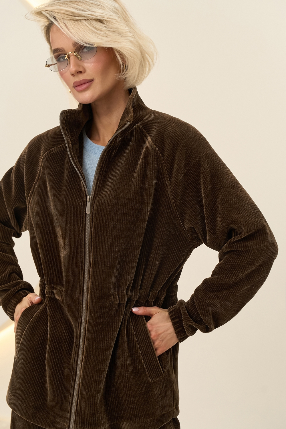 Актуальна парка із легкого вельвету на трикотажній основі. Тканина м'яка, приємна на дотик, достатньо еластична. Модель вільного силуету, куліса по талії забезпечує комфортну посадку.