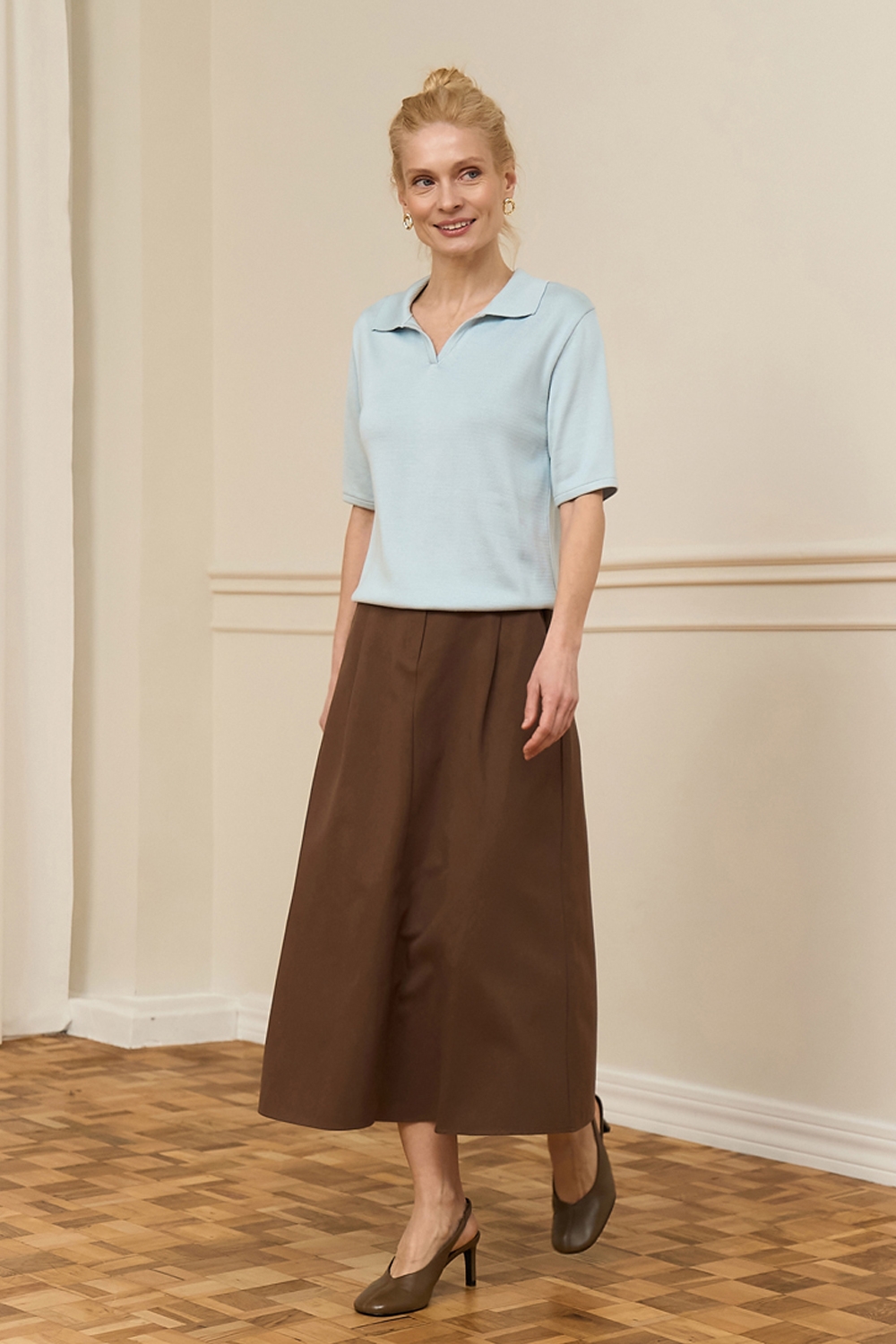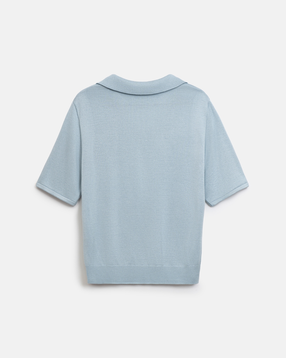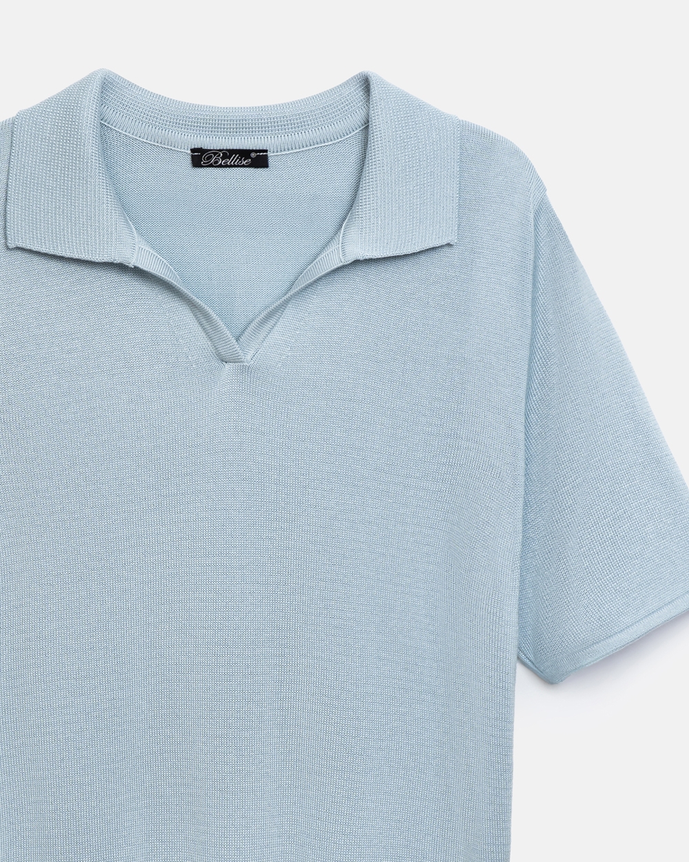 Актуальне поло вільного силуету виконане з гладкої, приємної до тіла віскозної пряжі з додаванням бавовни. Низ виробу доповнений фіксуючою резинкою.