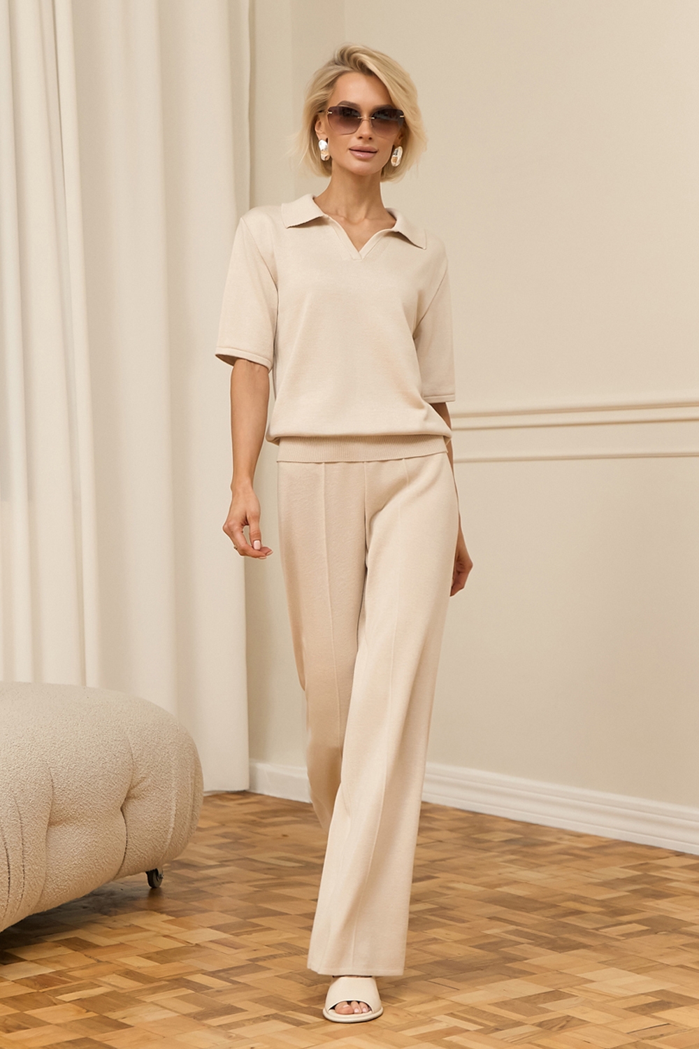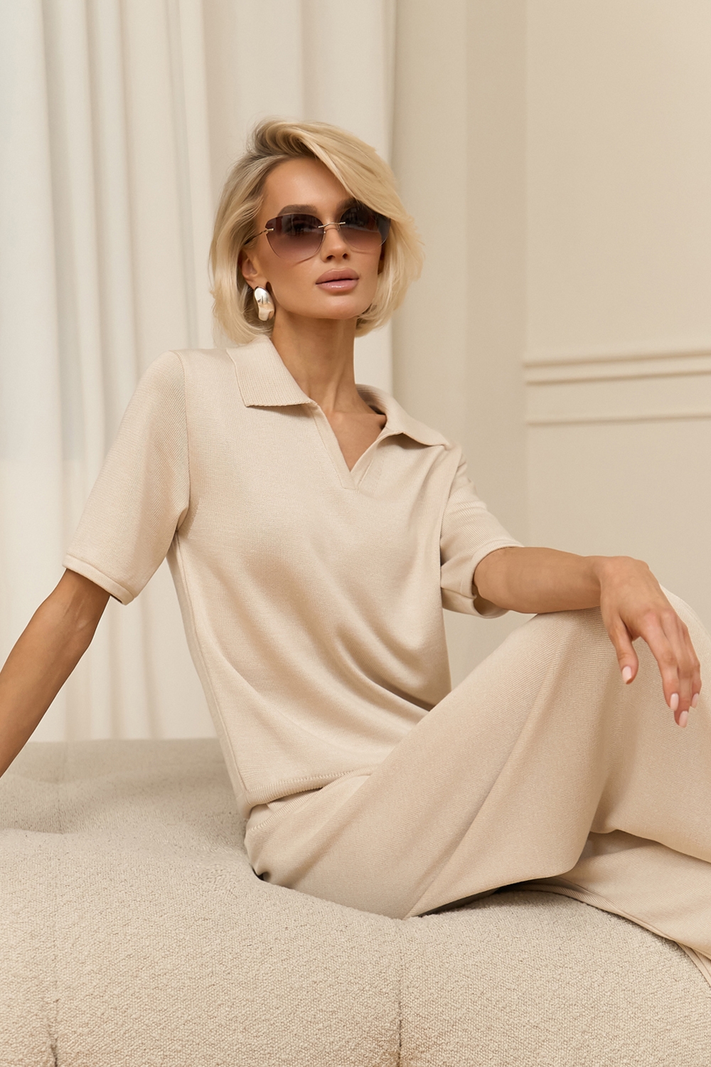Актуальне поло вільного силуету виконане з гладкої, приємної до тіла віскозної пряжі з додаванням бавовни. Низ виробу доповнений фіксуючою резинкою.