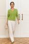 Ажурне поло з шовковистої віскозної пряжі. Виріб прямого силуету з комфортною лінією плеча в пластичному та стабільному переплетенні з ажурним візерунком. V-подібний виріз горловини, доповнений відкладним комірцем-поло. Низ виробу оформлений планкою.