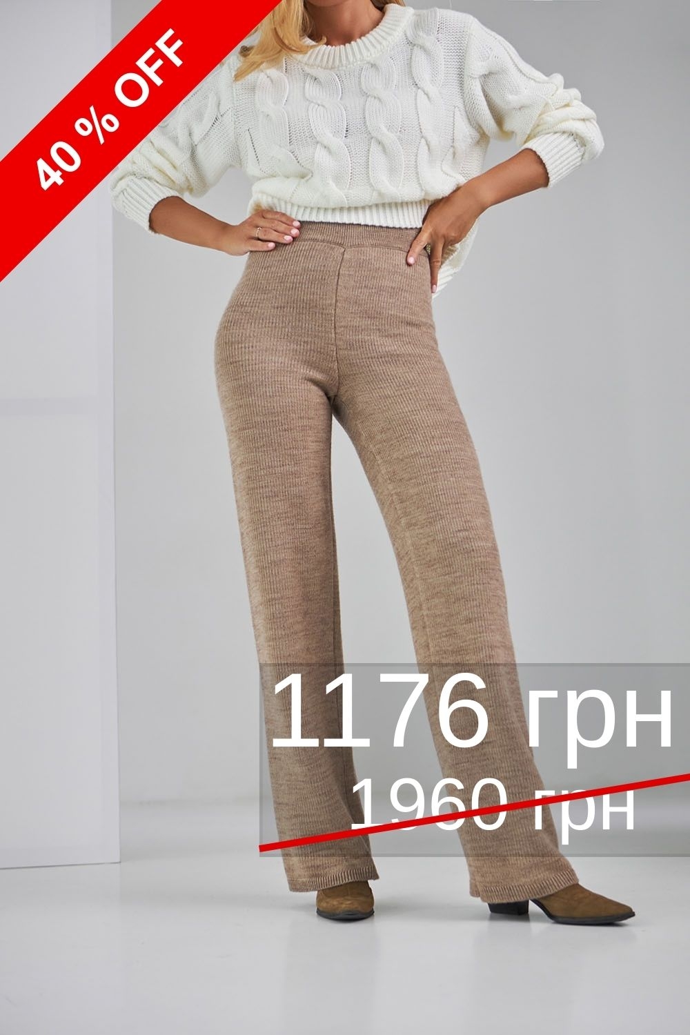 Жіночі штани з комфортної напіввовняної пряжі. Крій штанів характеризується рівномірним розширенням від стегна, без бокового шву. Вільний силует дає зручність у статиці та русі.