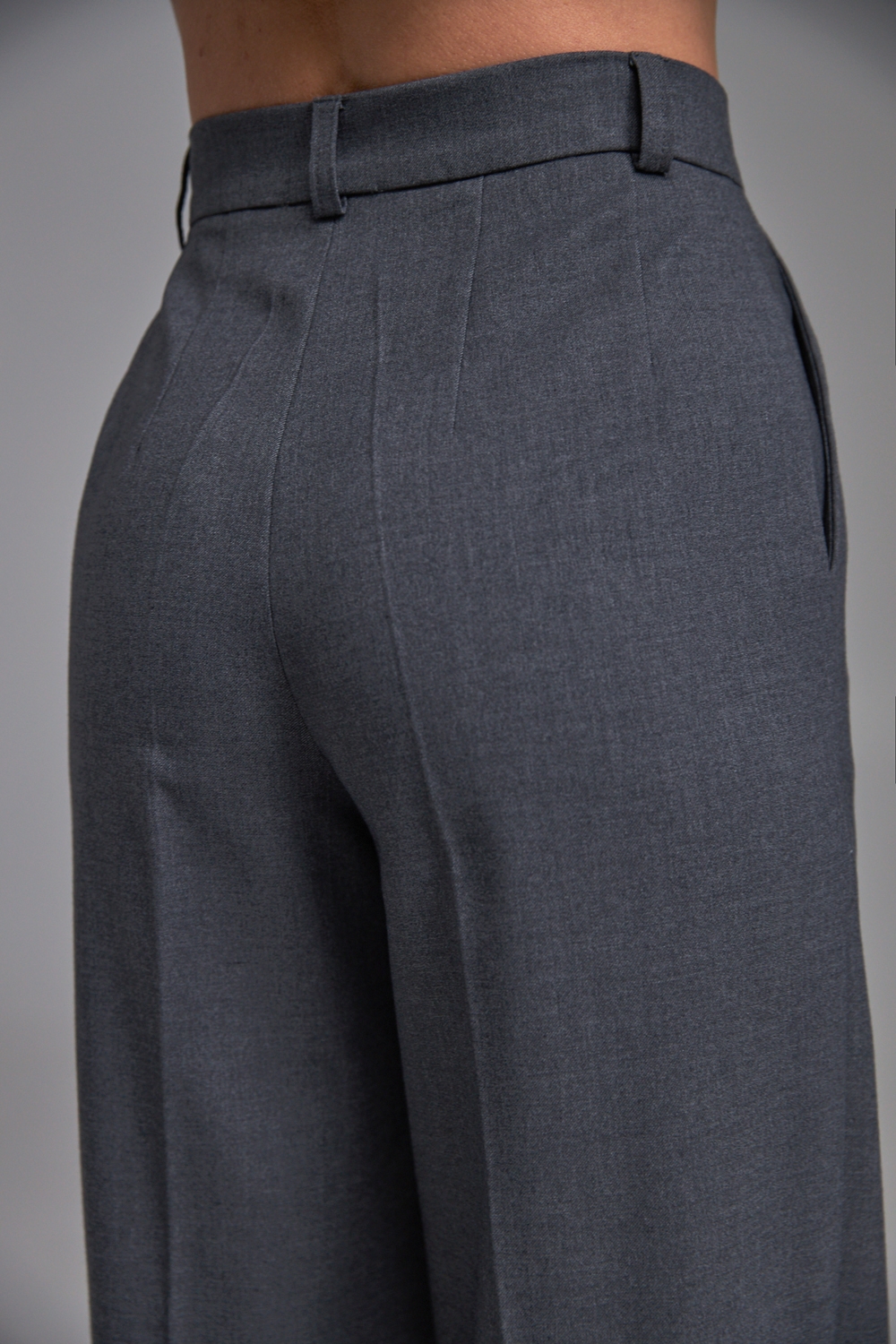 Класичні прямі штани з напіввовняної тканини середньої щільності. Завдяки елегантним защіпам спереду утворюються м’які складки, а бокові кишені додають зручності.