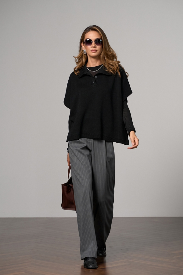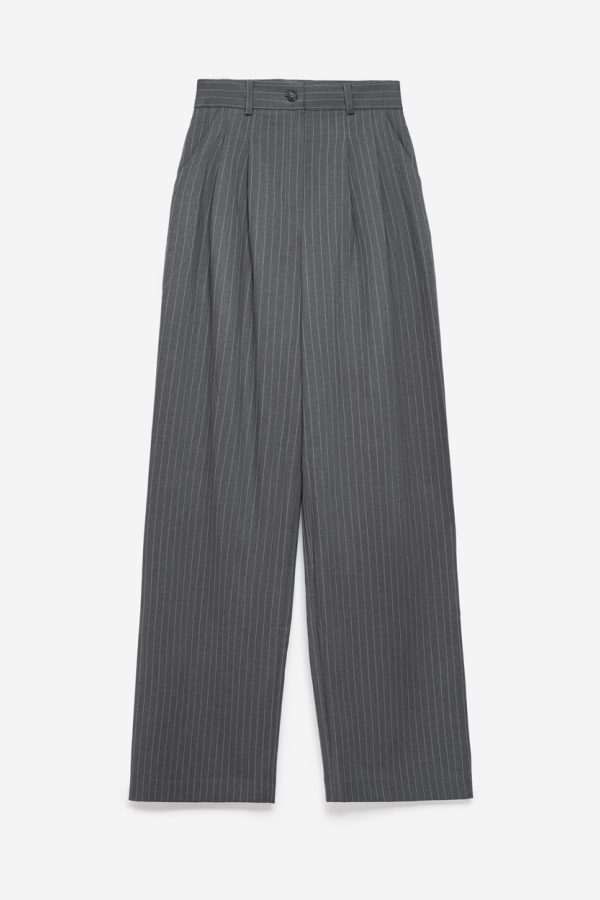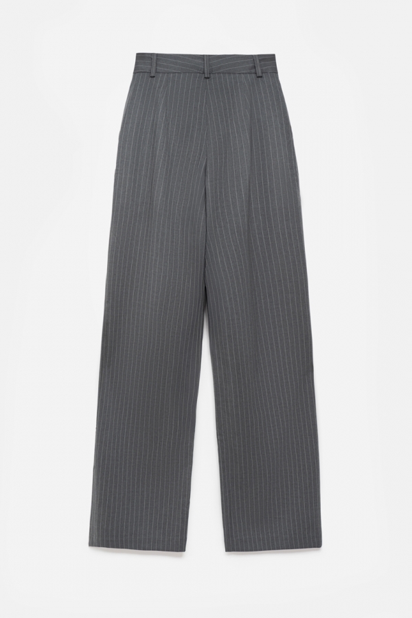 Елегантні штани прямого крою виготовлені з тканини середньої щільності з додаванням віскози. Попереду стильні складки-защіпи.