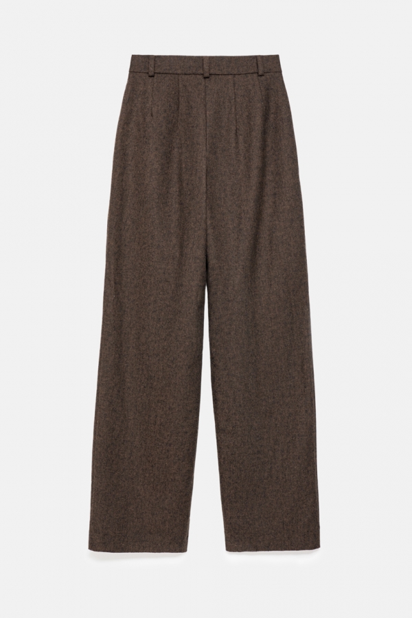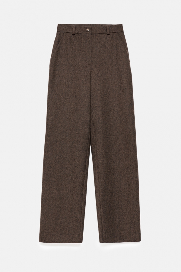 Теплі класичні штани прямого крою, виготовлені з напіввовняної тканини з додаванням віскози та еластану. Модель із високою посадкою та функціональними кишенями.