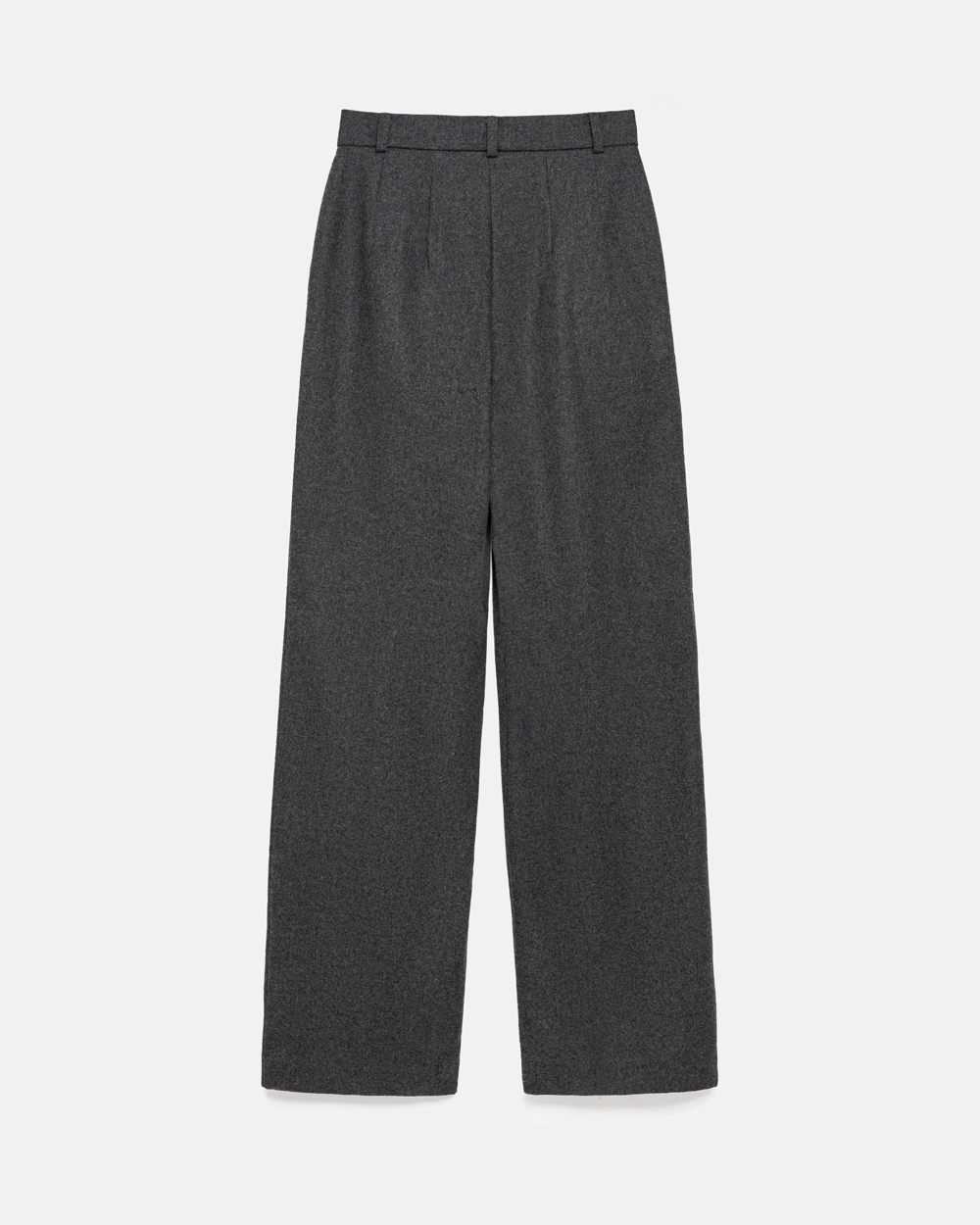 Теплі класичні штани прямого крою, виготовлені з напіввовняної тканини з додаванням віскози та еластану. Модель із високою посадкою та функціональними кишенями.