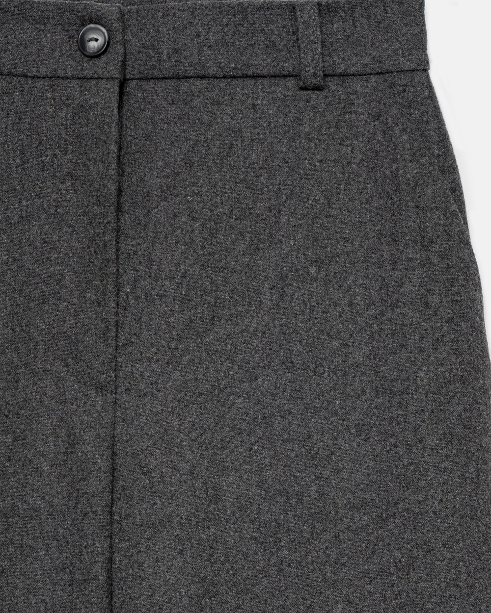 Теплі класичні штани прямого крою, виготовлені з напіввовняної тканини з додаванням віскози та еластану. Модель із високою посадкою та функціональними кишенями.