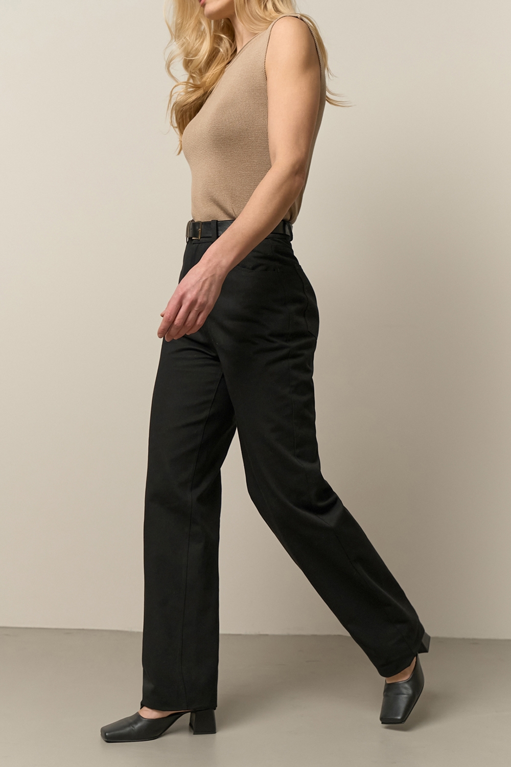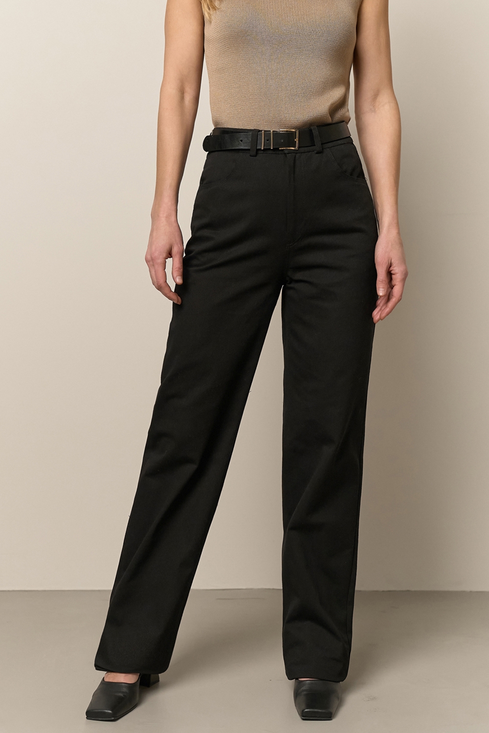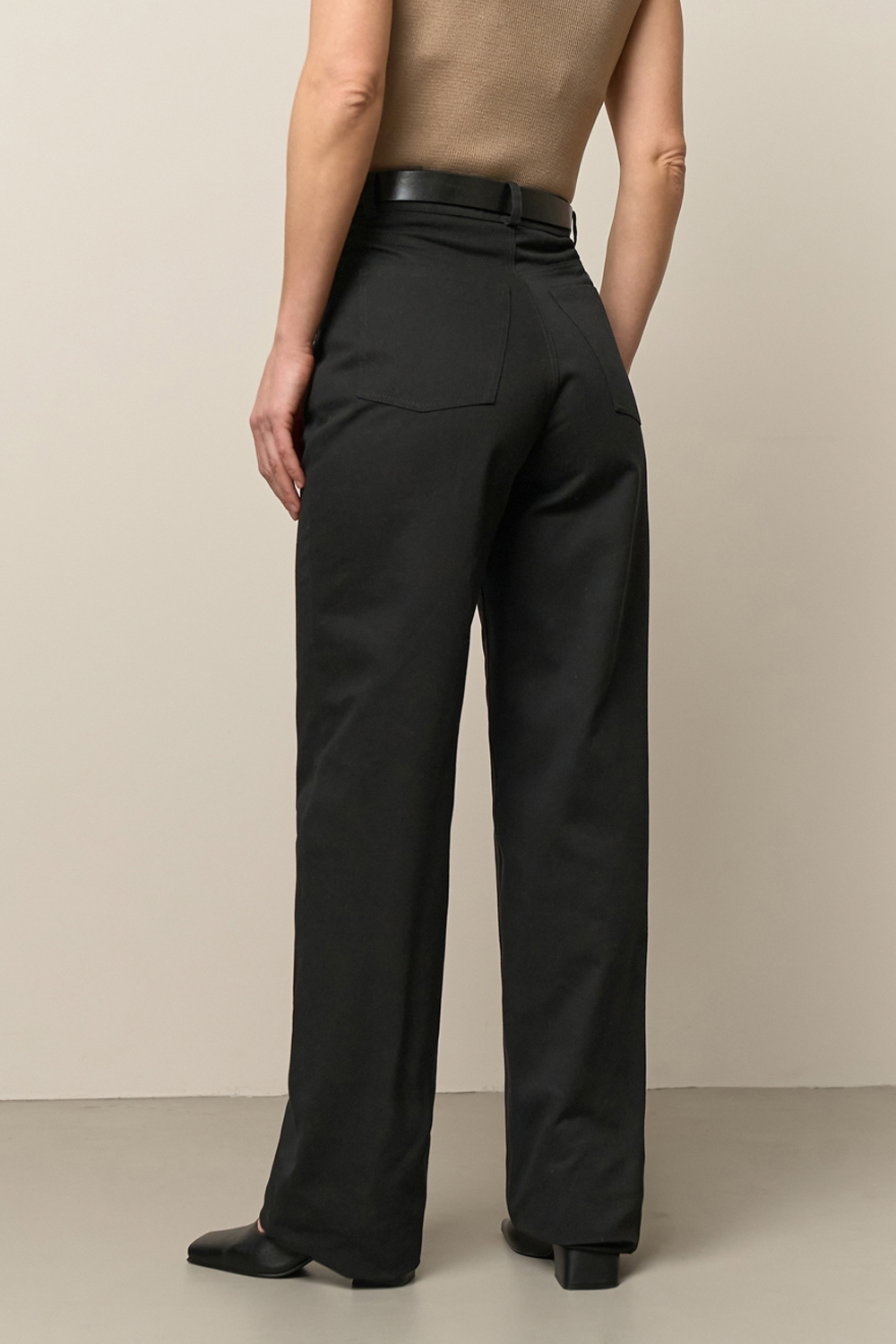 Бавовняні штани прямого крою з тканини середньої щільності, що тримає форму. Зручна висока посадка.