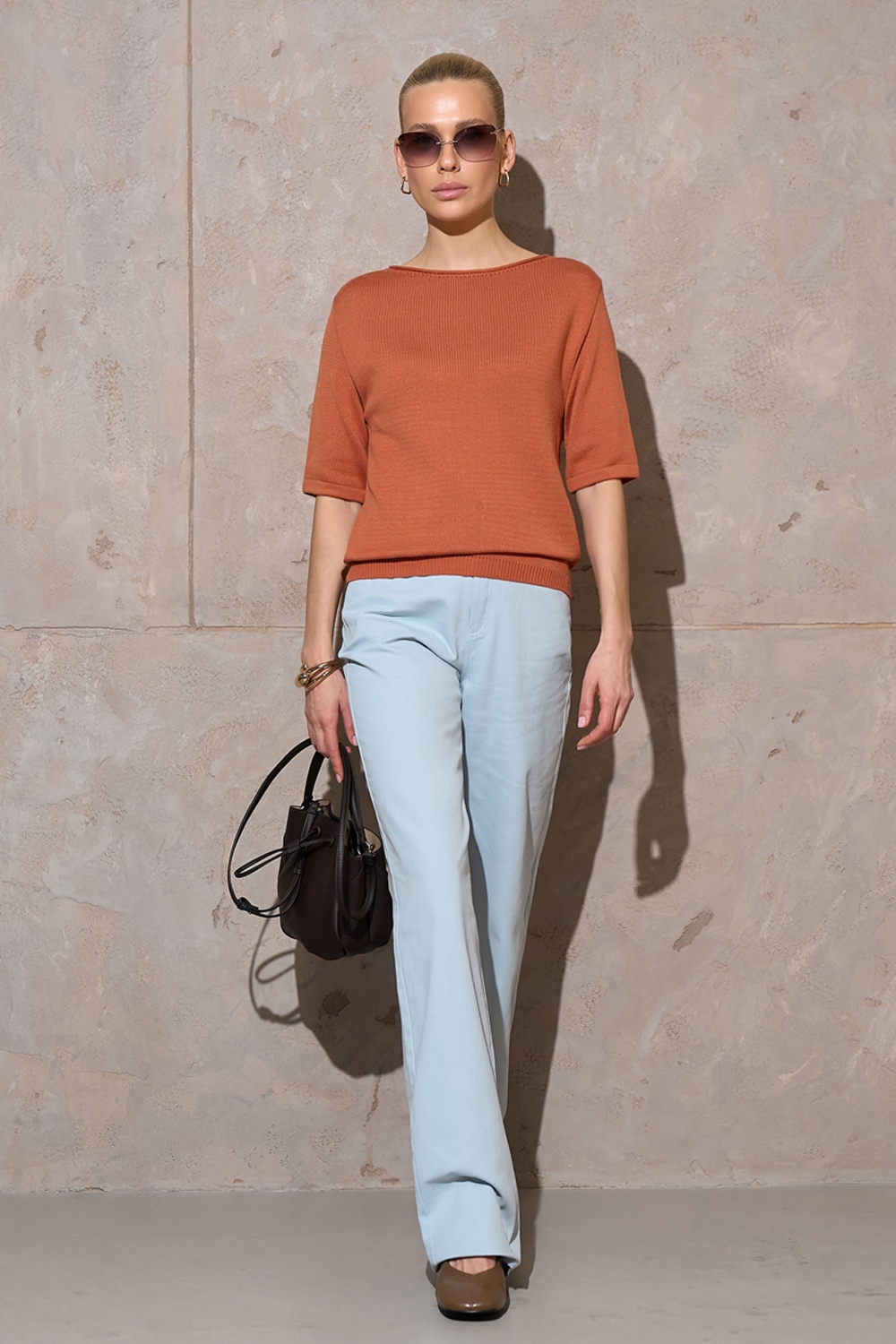 Бавовняні штани прямого крою з тканини середньої щільності, що тримає форму. Зручна висока посадка.