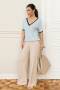 Класичні штани прямого крою з високою посадкою. Функціональні кишені в бакових швах та еластична резинка позаду виробу додають комфорту.