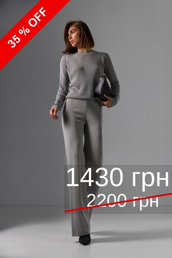 Брюки-палаццо з ніжної шовковистої натуральної пряжі з включенням віскози та бавовни. Гладке охайне переплетіння. Виріб гарно тримає форму, оснащений м'якою еластичною резинкою.