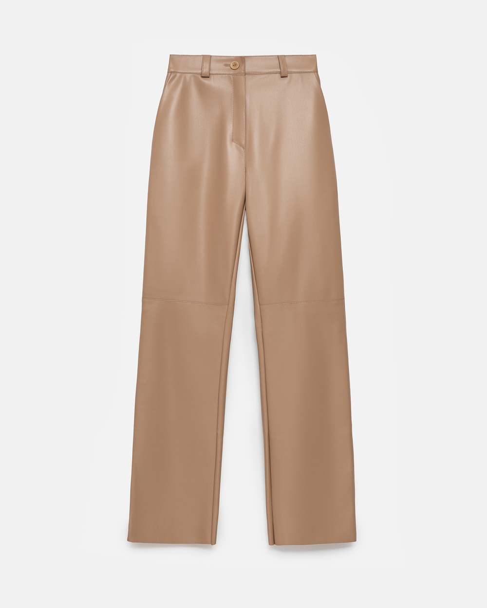 Трендові брюки класичного прямого крою виконані з пластичної, тактильно приємної екошкіри, яка з вивороту має замшеву текстуру.