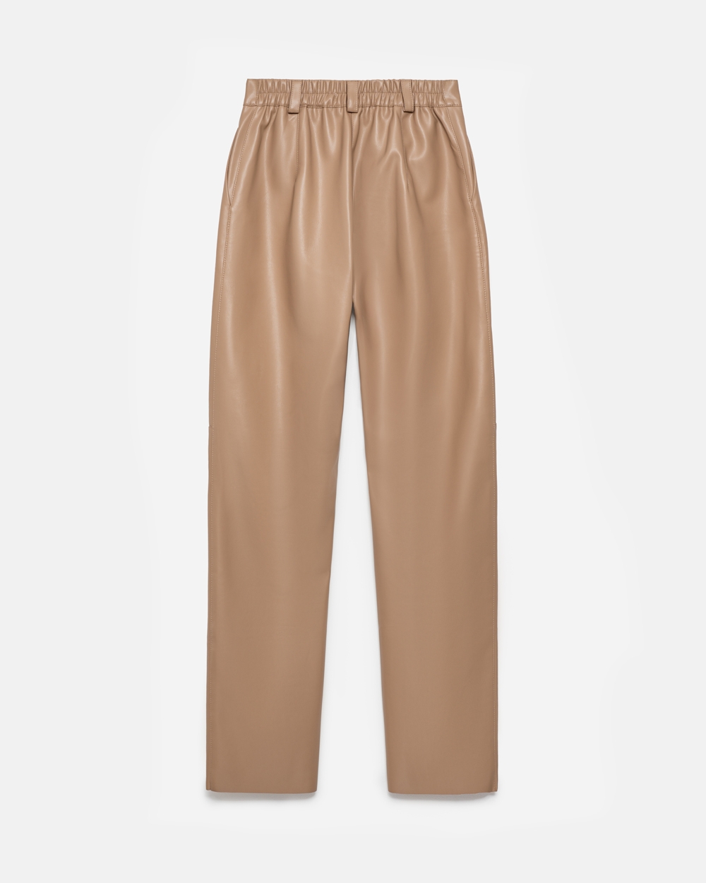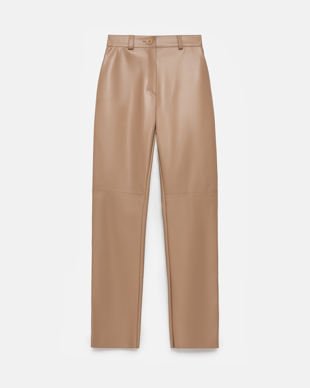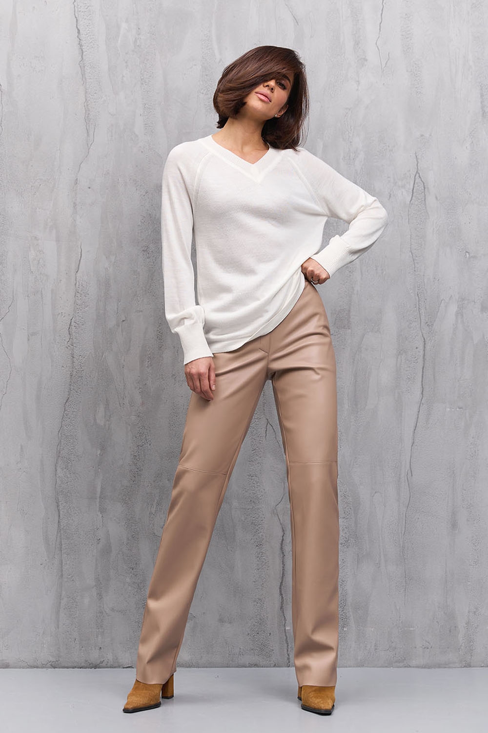Трендові брюки класичного прямого крою виконані з пластичної, тактильно приємної екошкіри, яка з вивороту має замшеву текстуру.