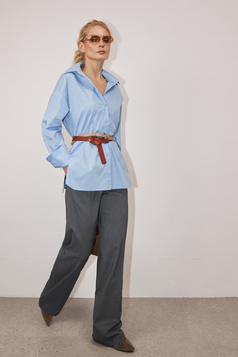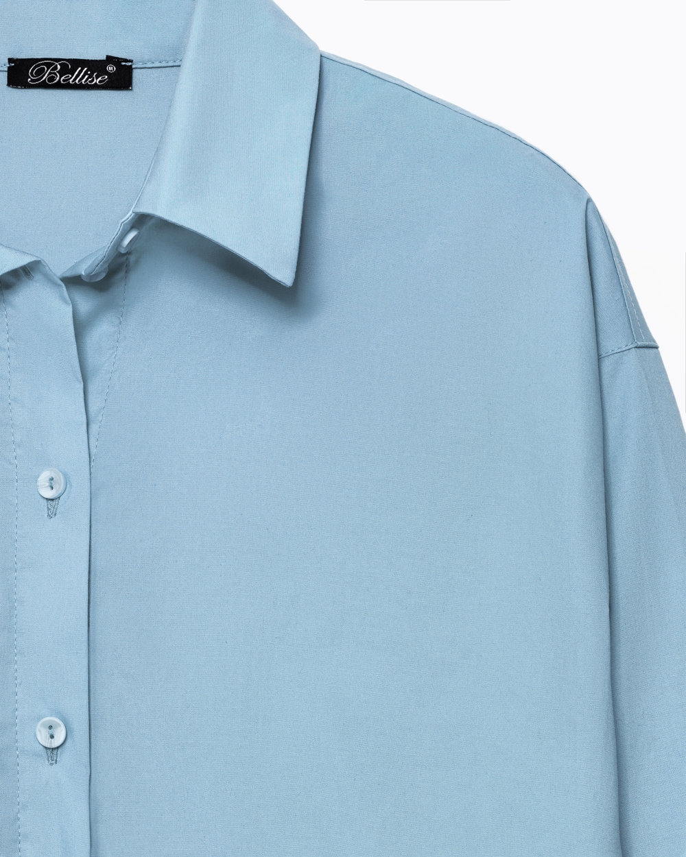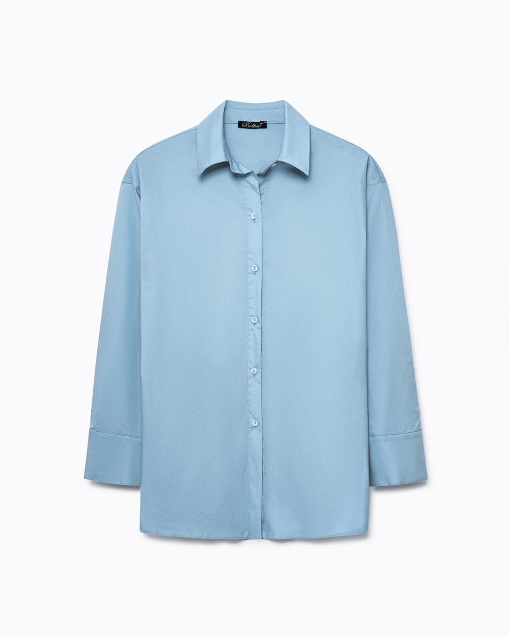 Базова бавовняна сорочка вільного крою зі спущеною лінією плеча та розрізами в бокових швах.