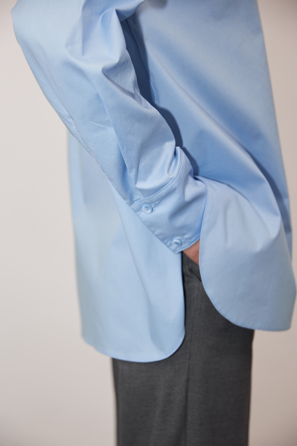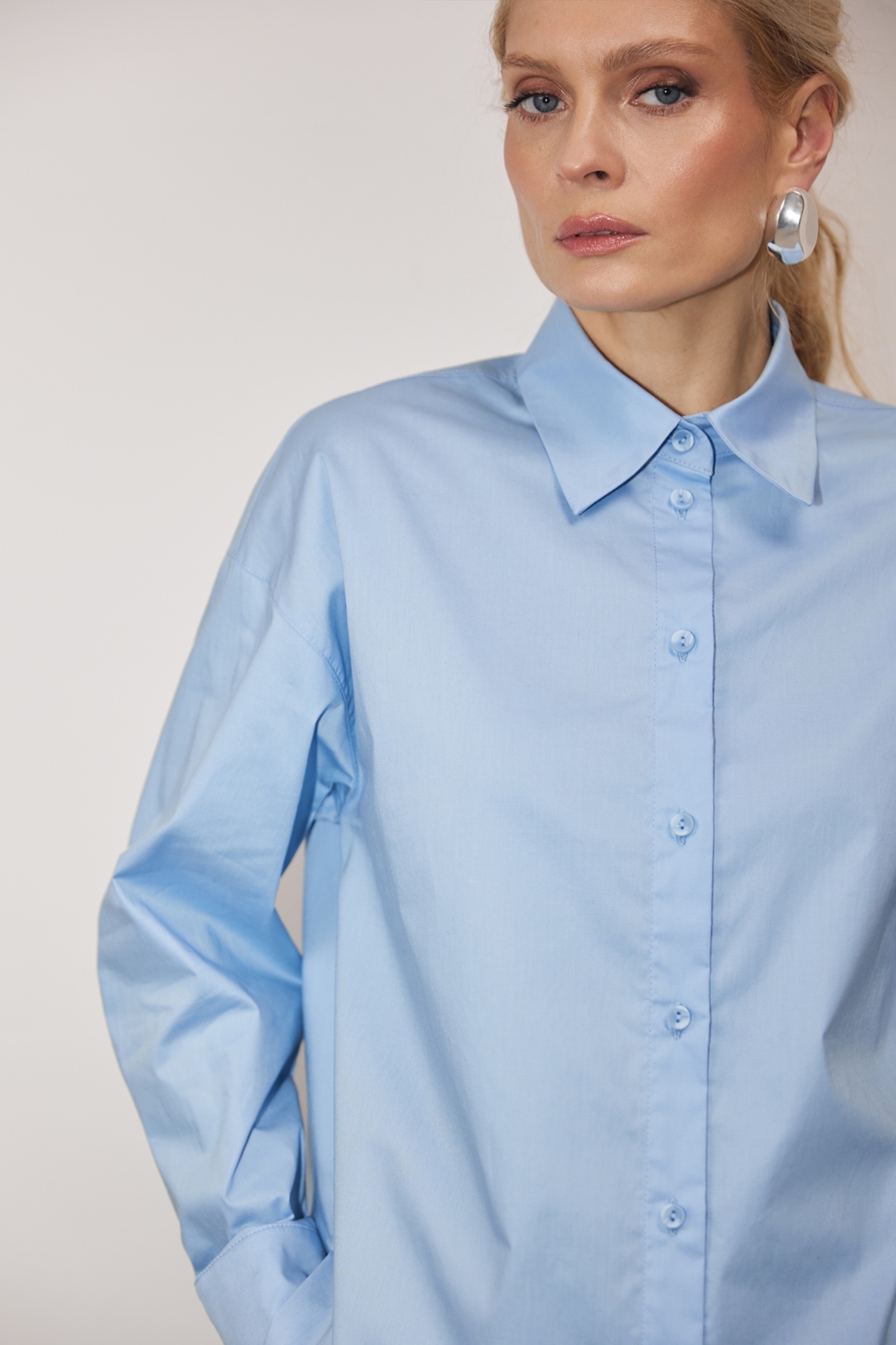 Базова бавовняна сорочка вільного крою зі спущеною лінією плеча та розрізами в бокових швах.