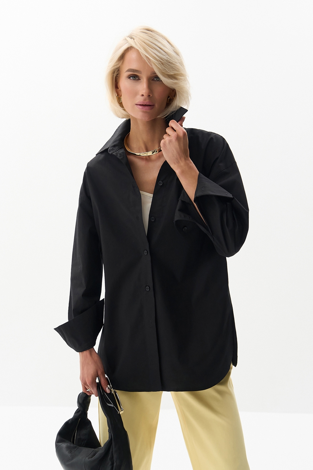 Базова бавовняна сорочка вільного крою зі спущеною лінією плеча та розрізами в бокових швах.