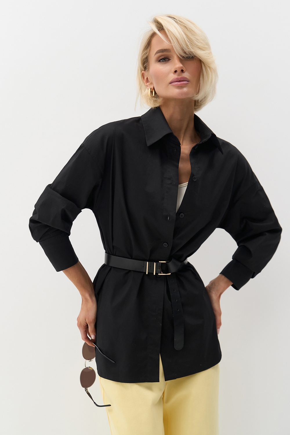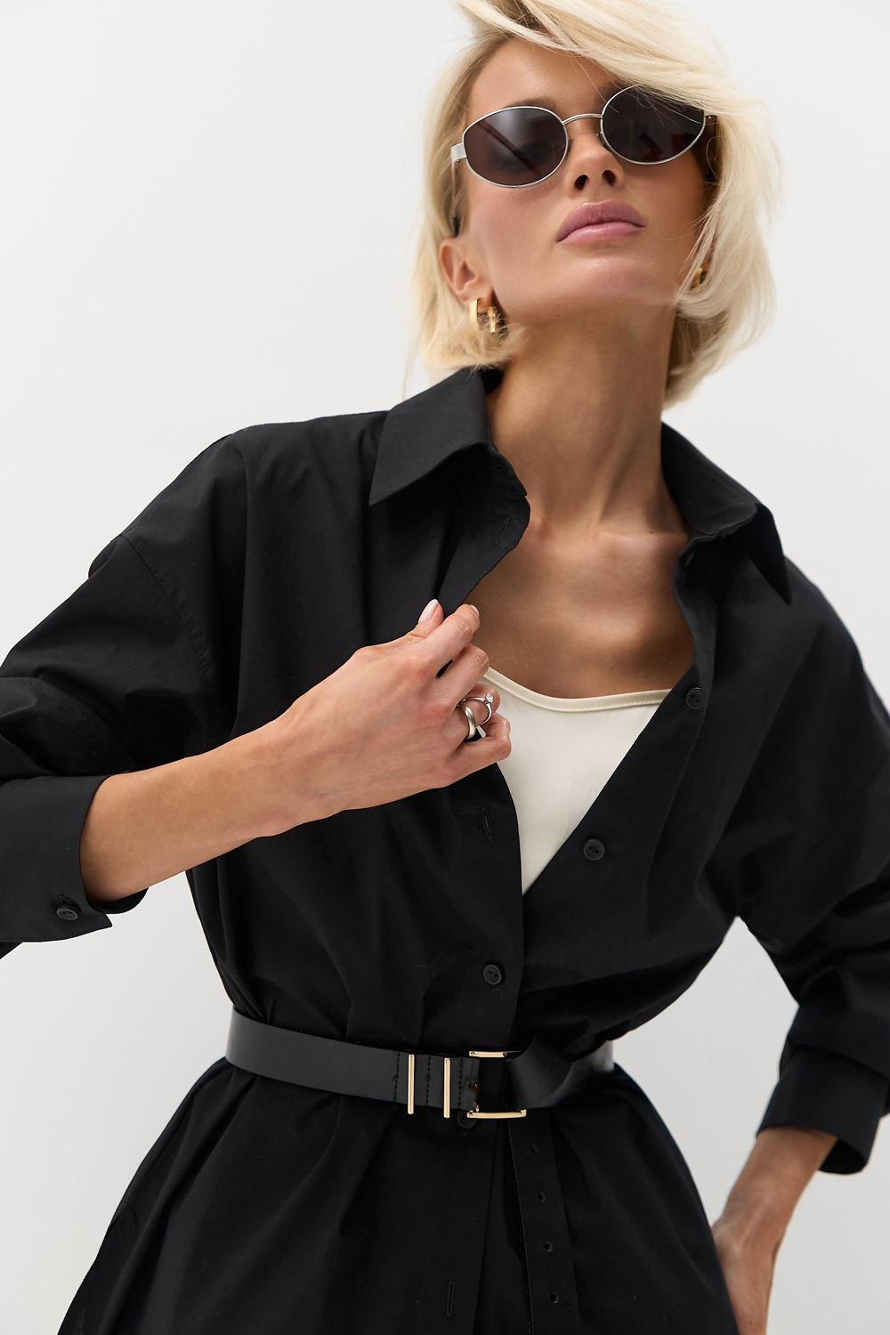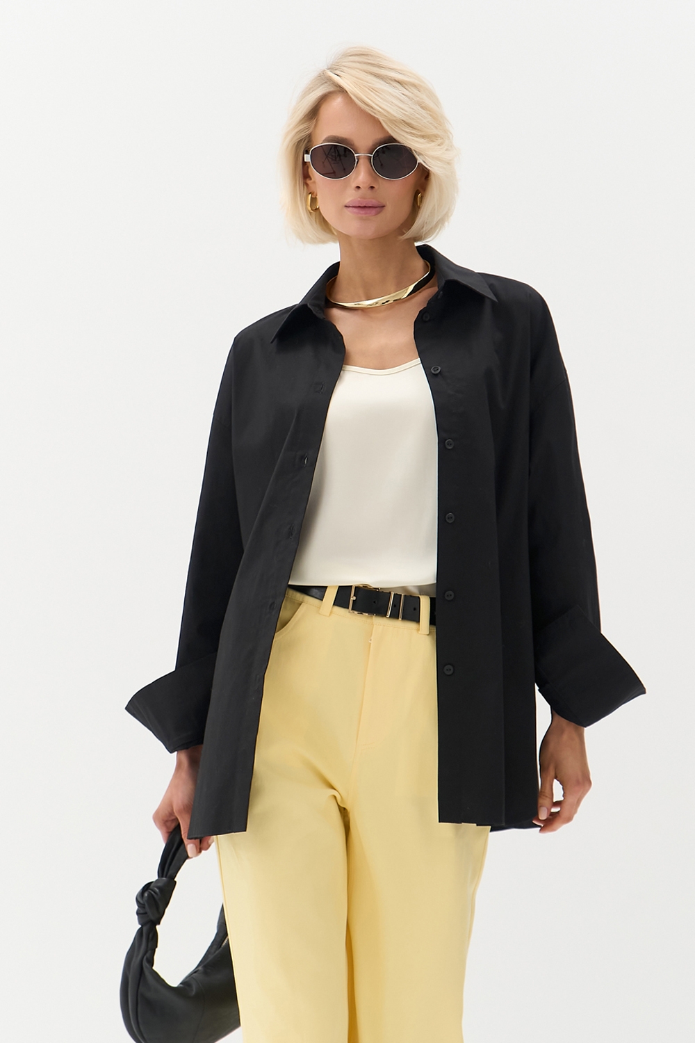 Базова бавовняна сорочка вільного крою зі спущеною лінією плеча та розрізами в бокових швах.