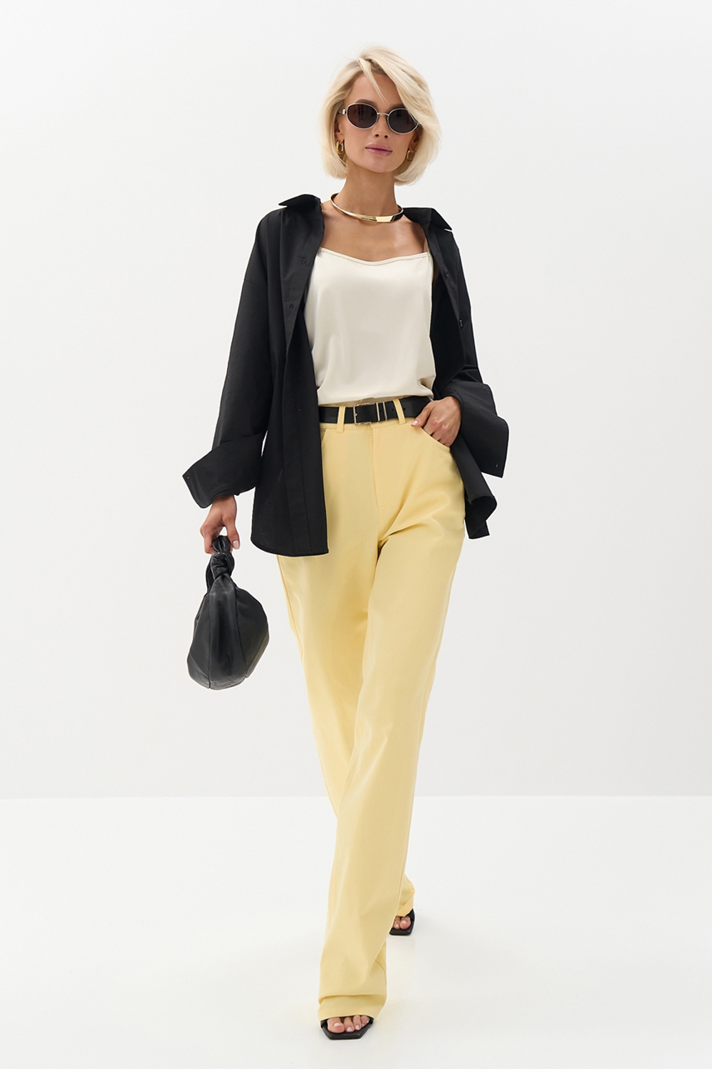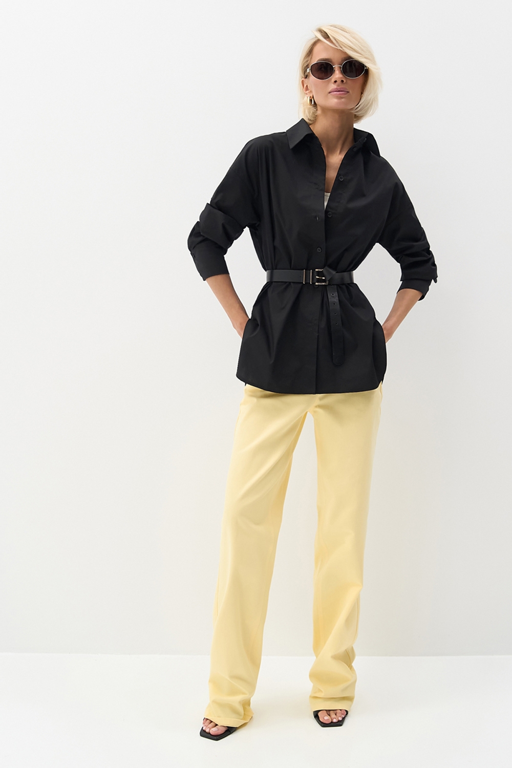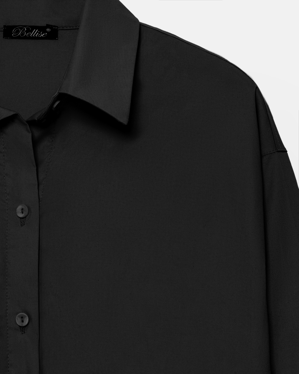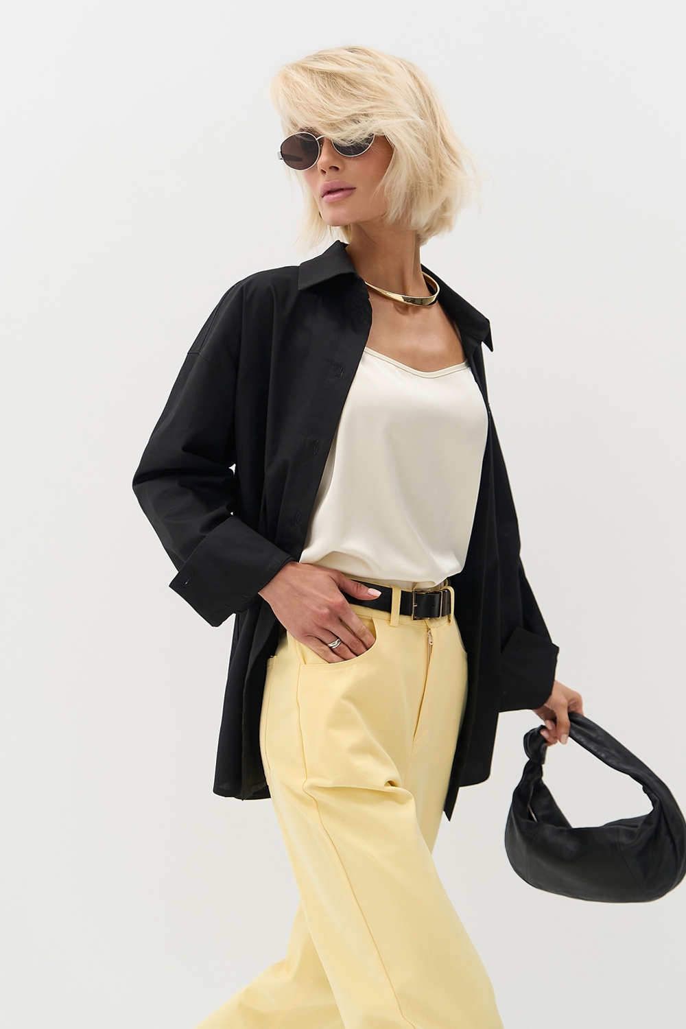 Базова бавовняна сорочка вільного крою зі спущеною лінією плеча та розрізами в бокових швах.