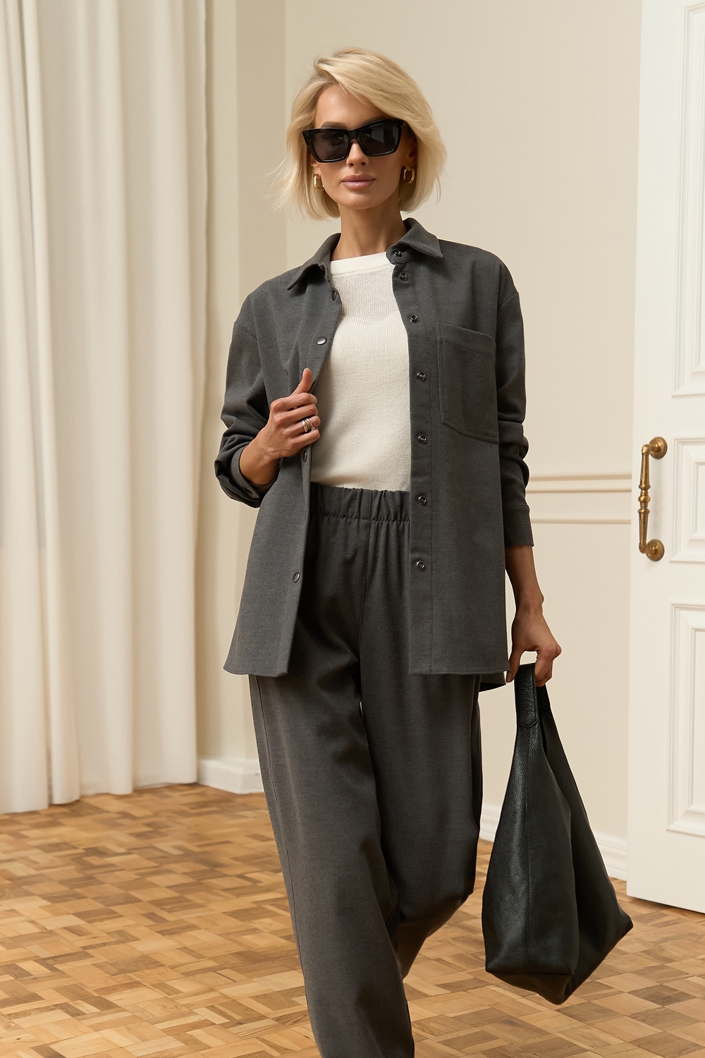Трендова сорочка зі щільної віскозної тканини з додаванням вовни. Матеріал м’який і приємний на дотик. Модель вільного фасону, гарно тримає форму.