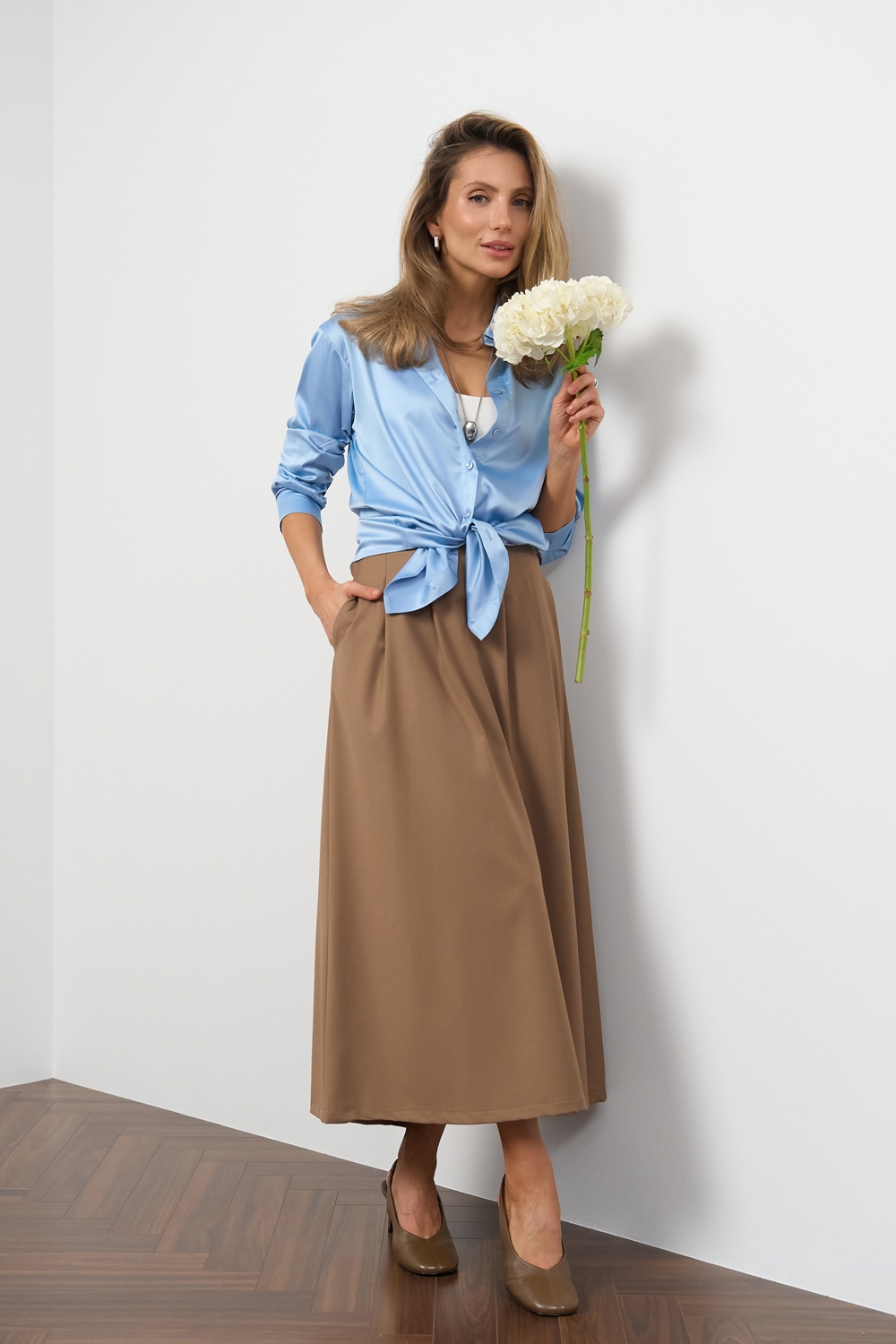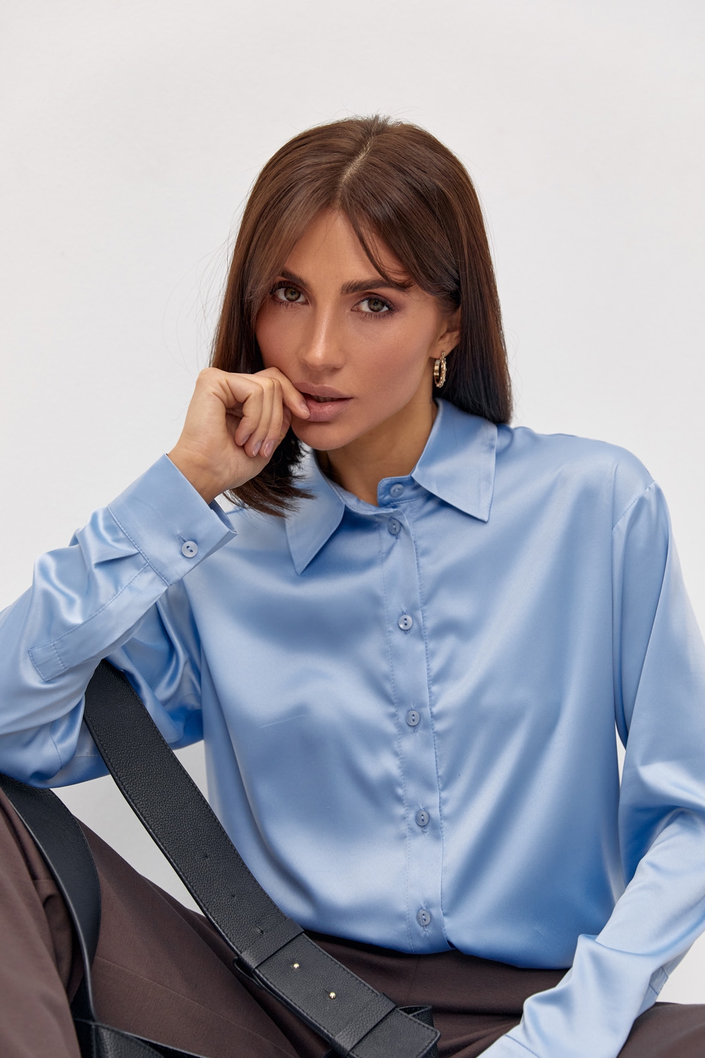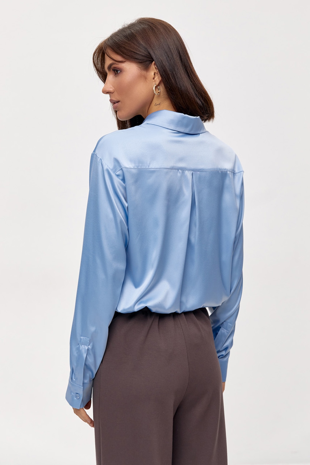 Блуза з преміальної шовкової тканини з ніжним матовим блиском. Комфортний силует, охайний манжет на гудзику.