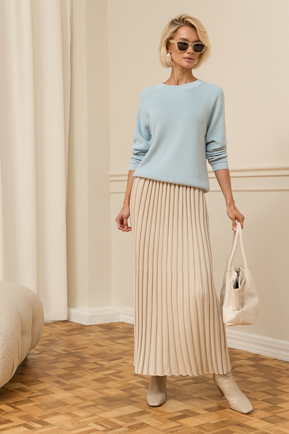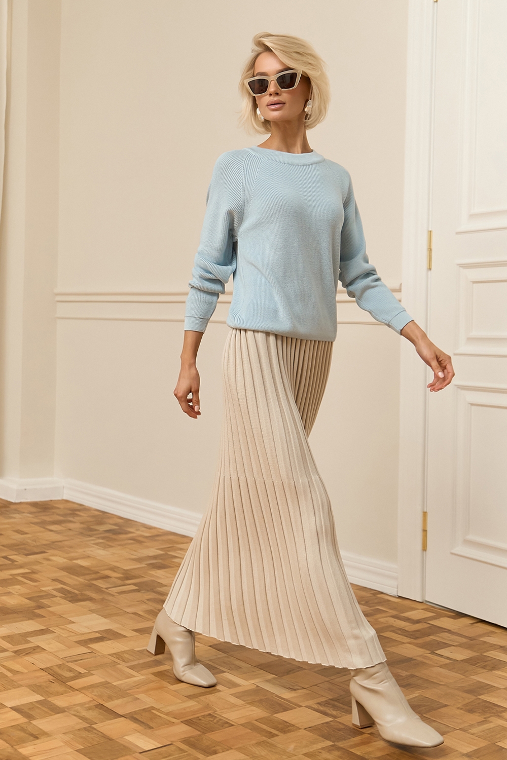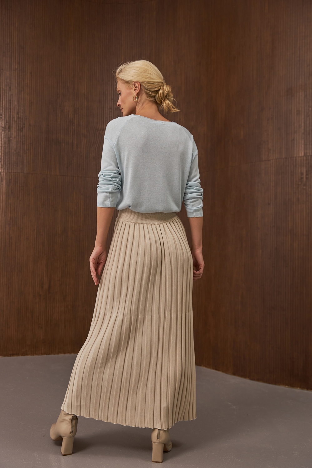 В'язана спідниця довжиною міді із комфортної натуральної пряжі з включенням бавовни та віскози.