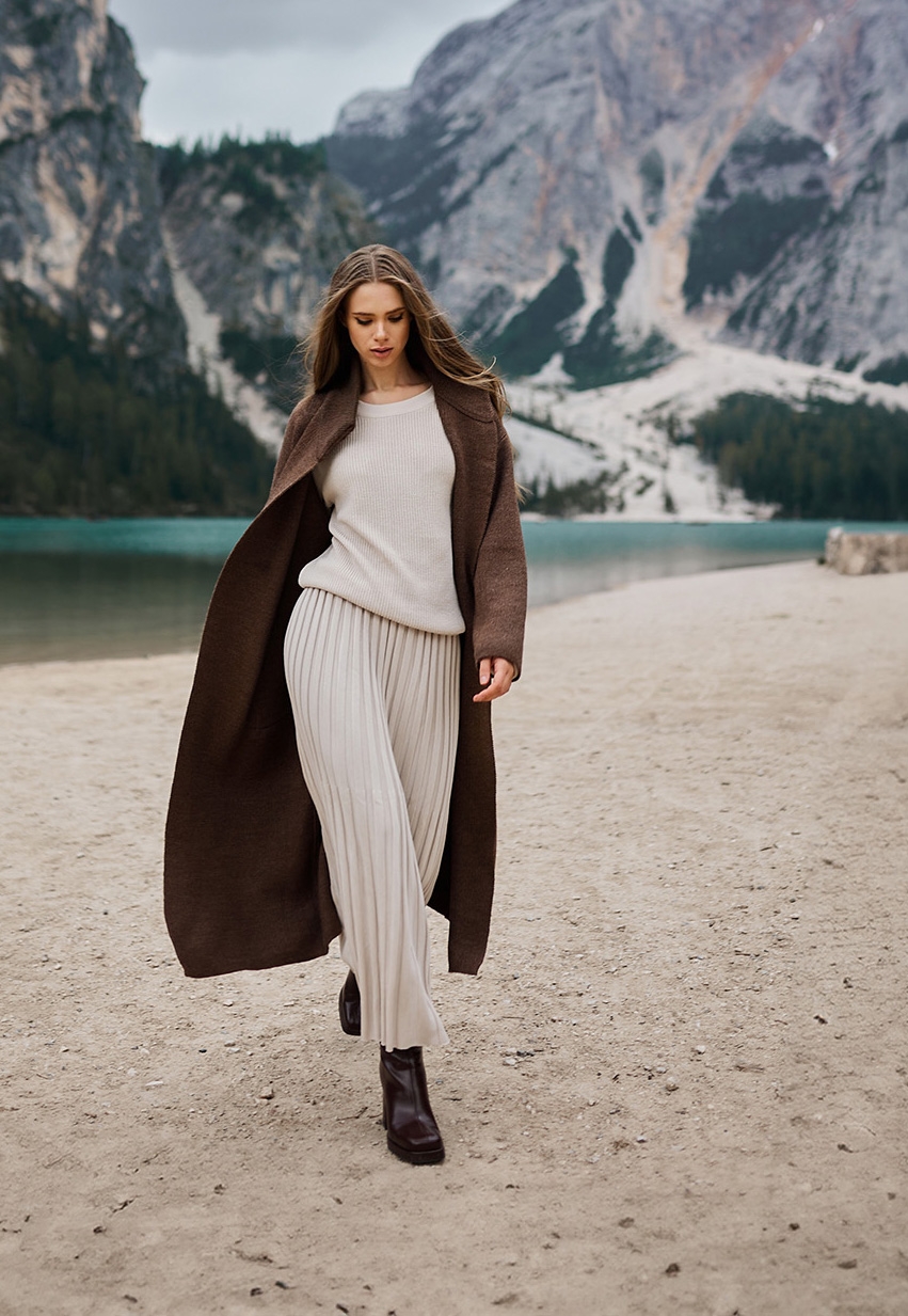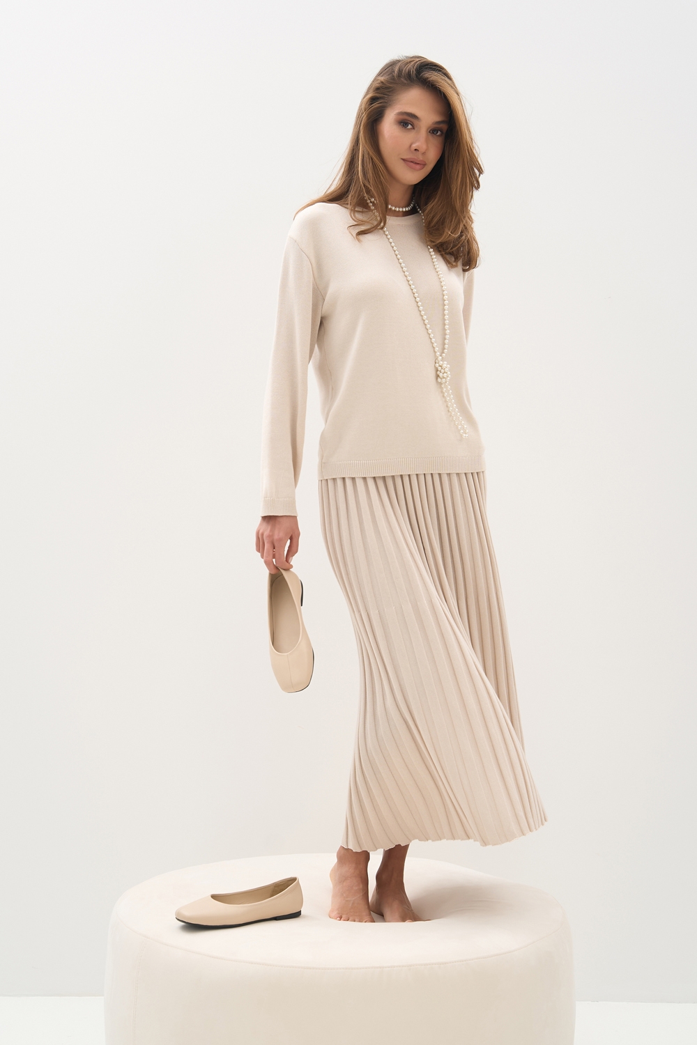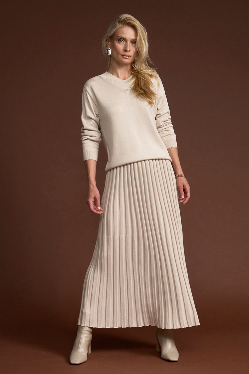 В'язана спідниця довжиною міді із комфортної натуральної пряжі з включенням бавовни та віскози.