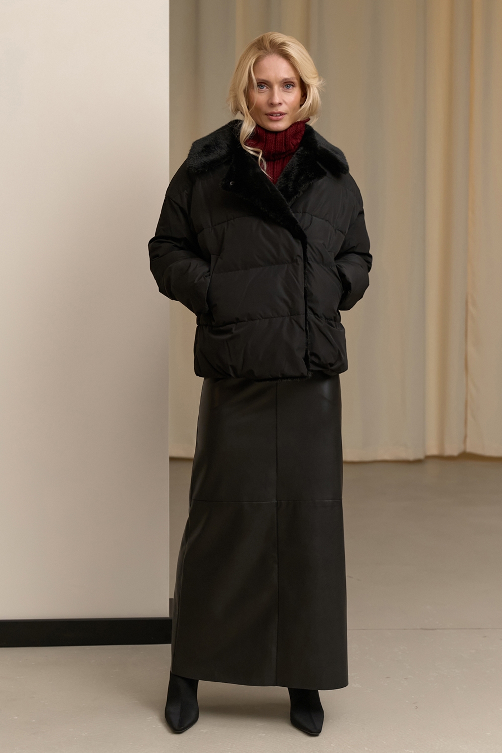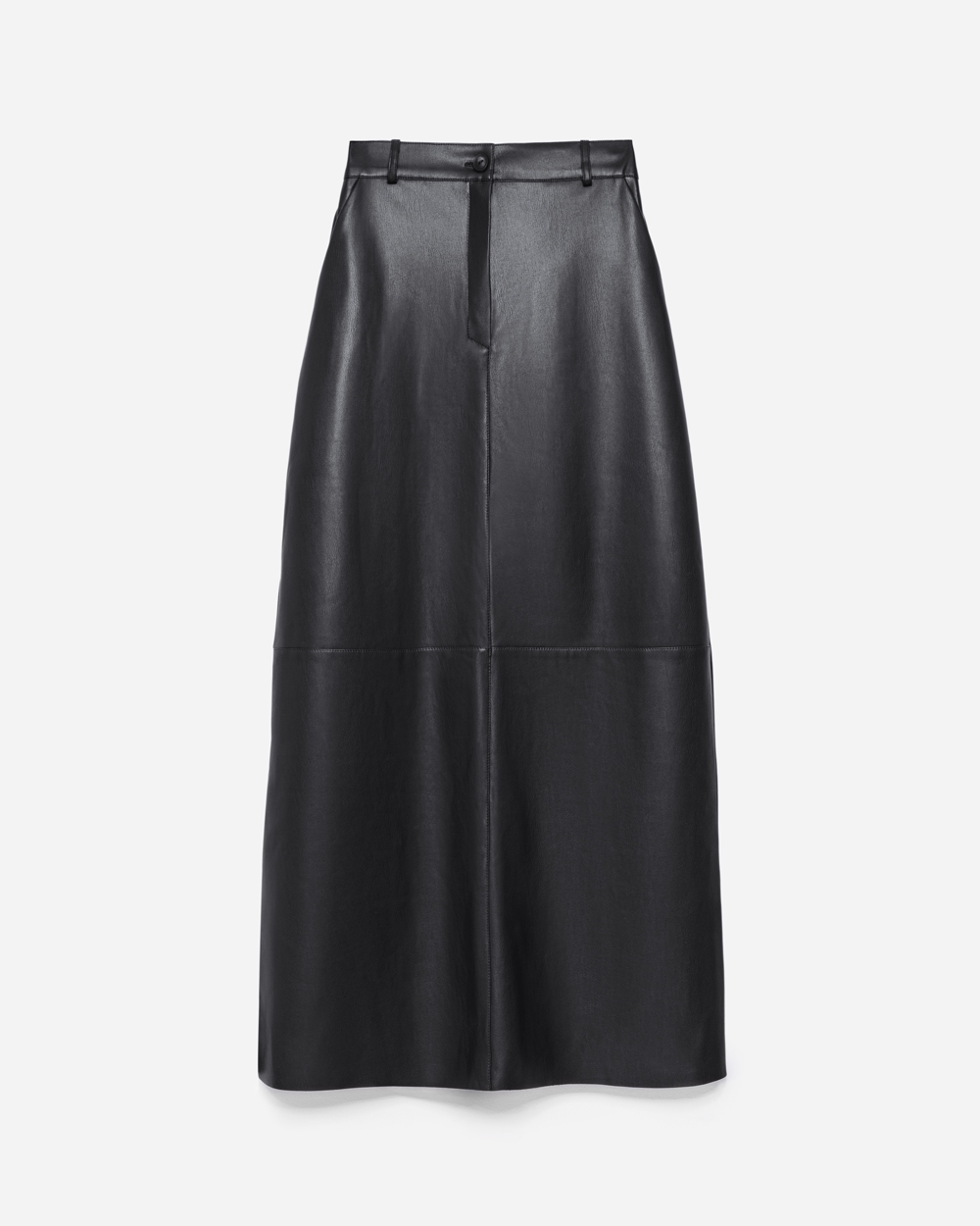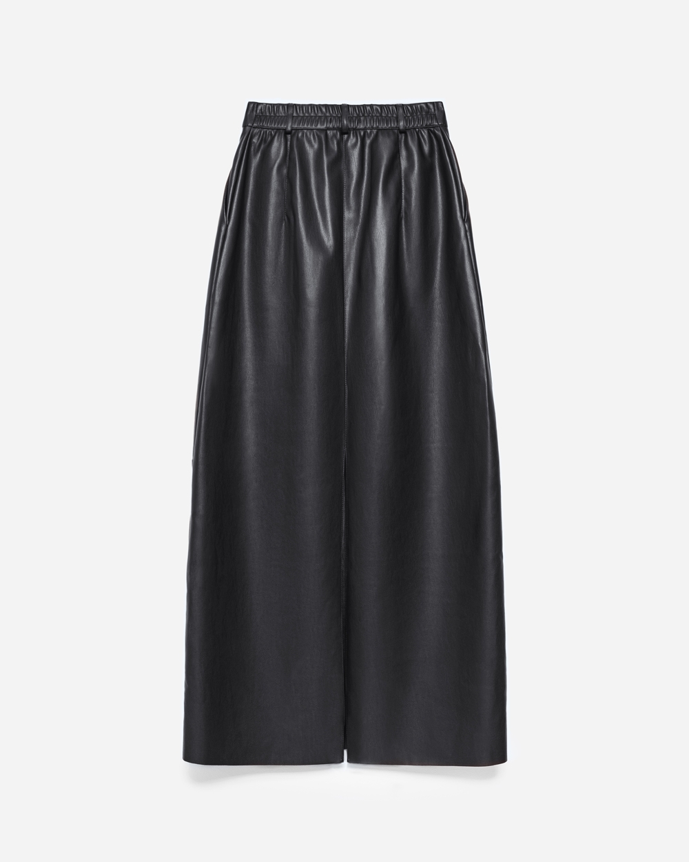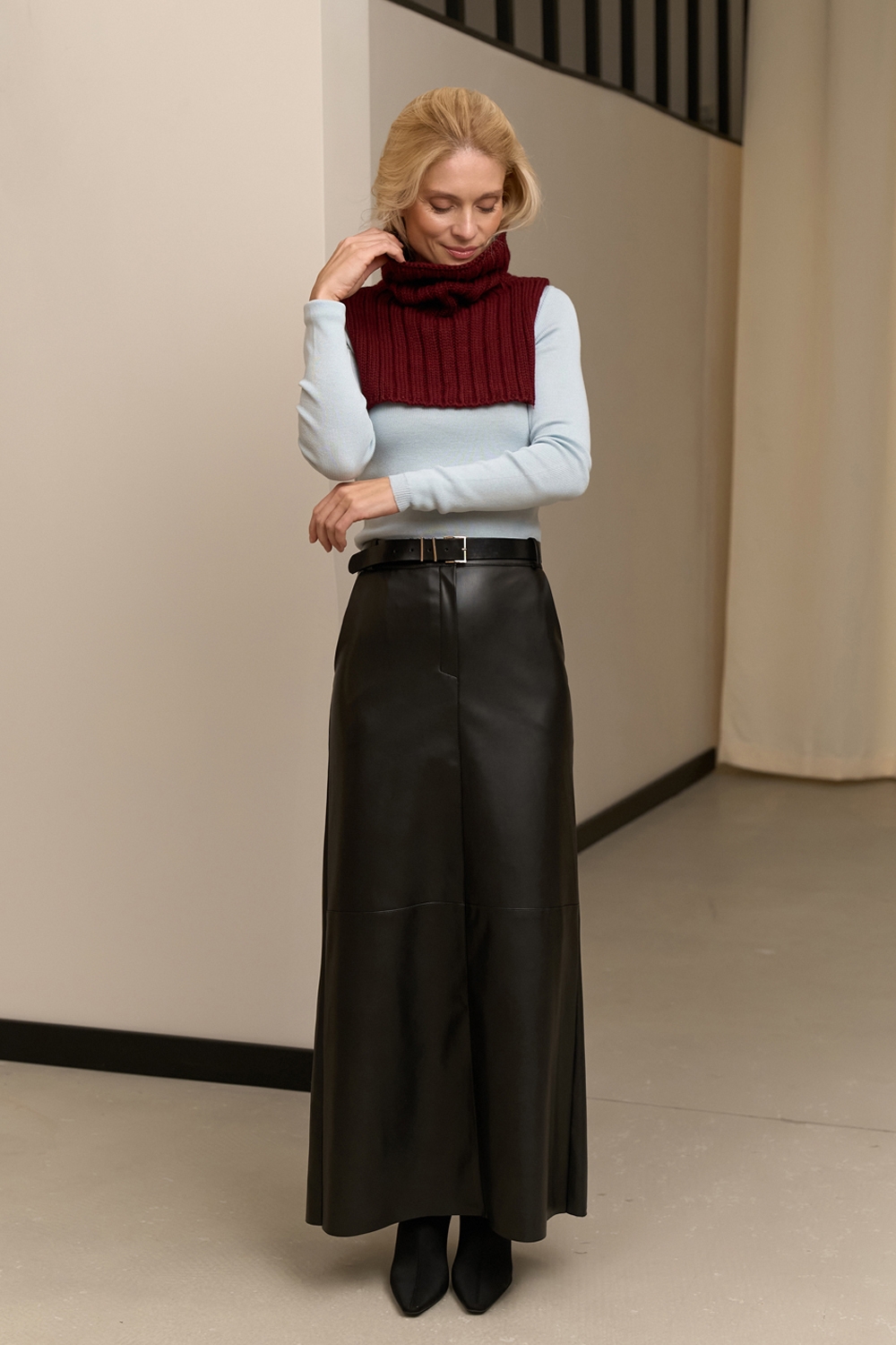Спідниця максі з еко-шкіри. Застібається на блисківку та ґудзик, позаду - пояс-резинка для максимального комфорту. Легкість руху забезпечує аккуратний розріз.