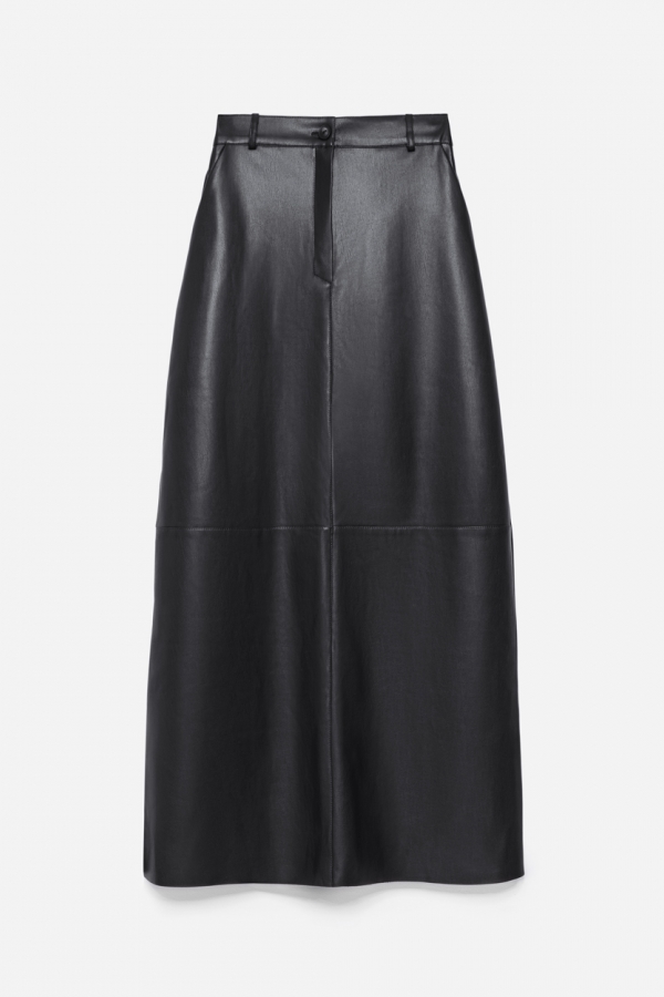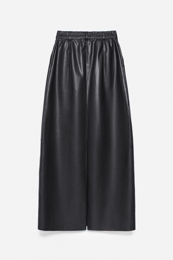 Спідниця максі з еко-шкіри. Застібається на блисківку та ґудзик, позаду - пояс-резинка для максимального комфорту. Легкість руху забезпечує аккуратний розріз.