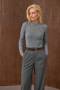 Спідниця з еко-шкіри А-силуету середньої довжини. Попереду спідниця оздоблена двома кишенями та акуратними складками. Застібка - блискавка та ґудзик.