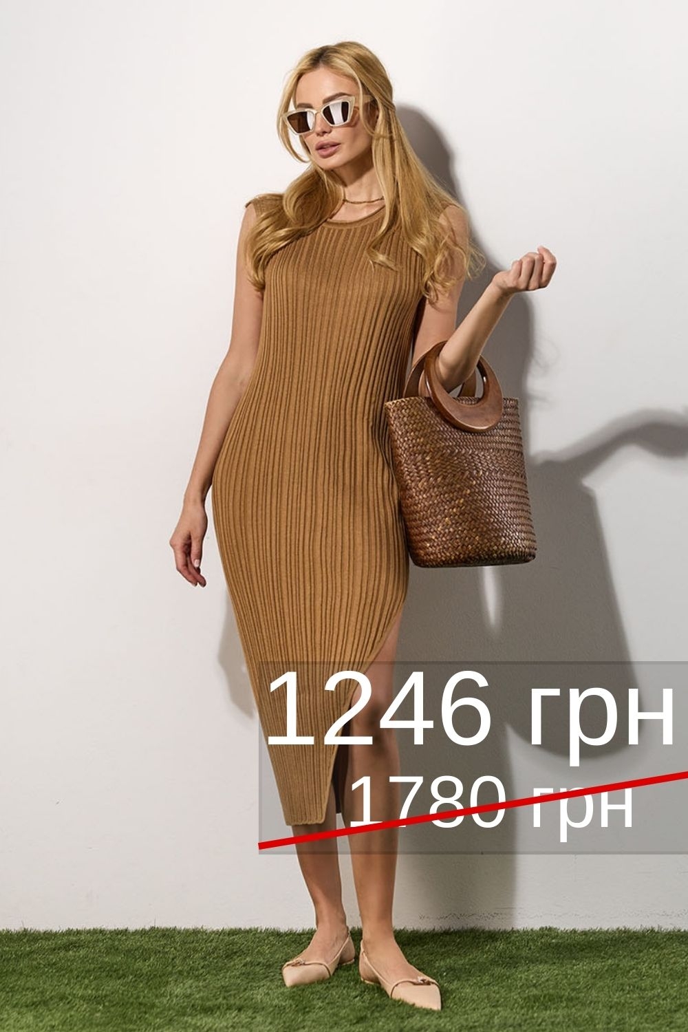 Лімітована серія з ніжної пряжі із включенням еластичних волокон віскози та бавовни. В'язана дивовижна сукня довжиною міді - це кохання з першого дотику.