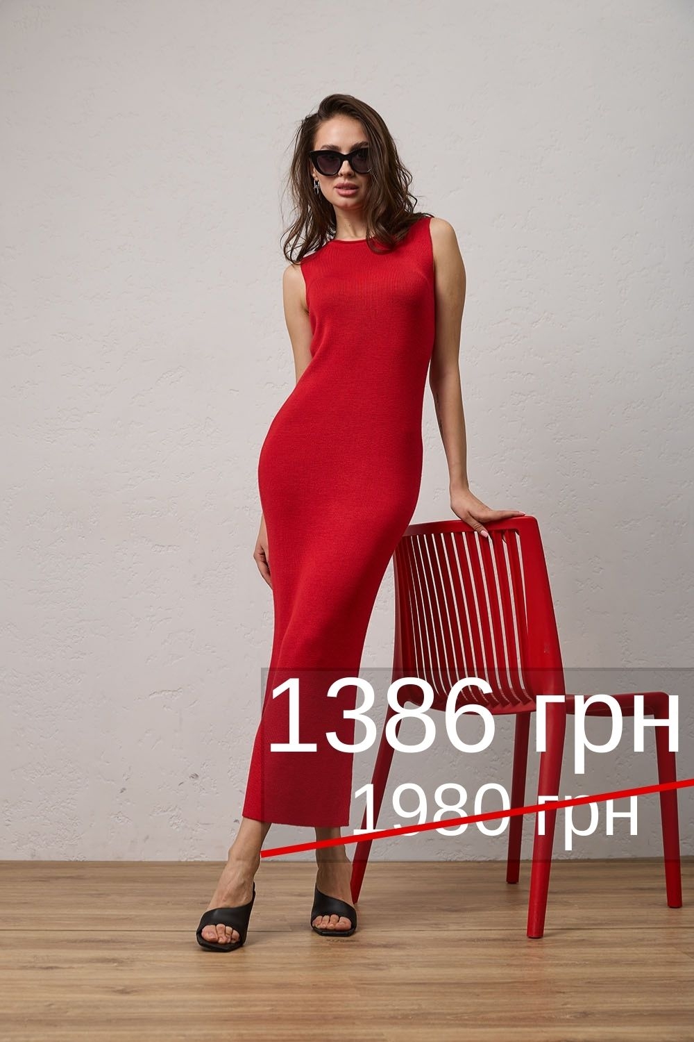 Вишукана сукня довжиною міді з ніжної на дотик віскозної пряжі з включенням бавовни. Чуттєво охоплює фігуру, бокові розрізи створюють інтригуючий акцент та забезпечують комфорт руху.