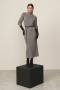 Сукня довжиною міді з напіввовняної пряжі з включенням віскози. Гладке стабільне переплетіння, гарно тримає форму. Рукав оздоблений високим манжетом, низ виробу - розслаблена імітована резинка.