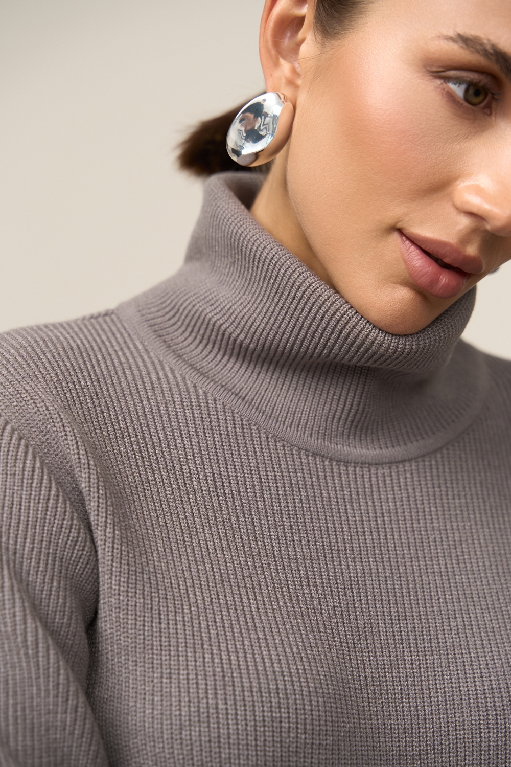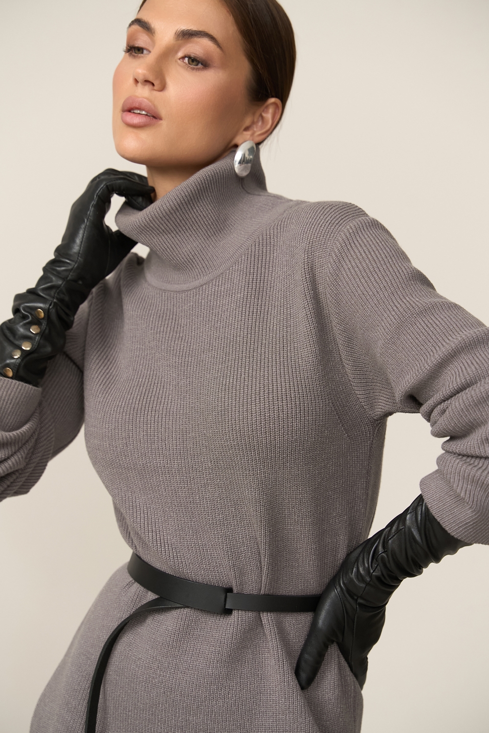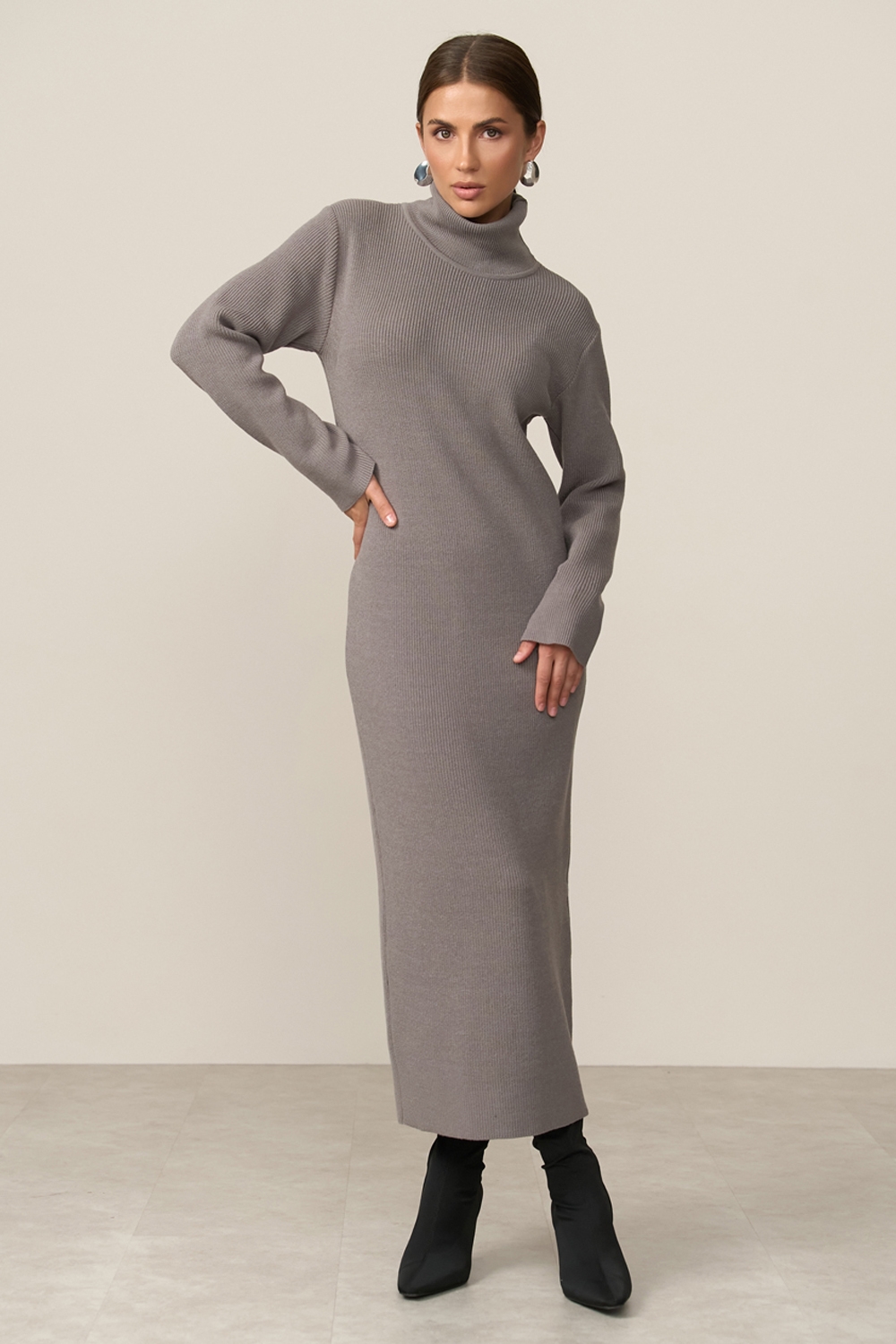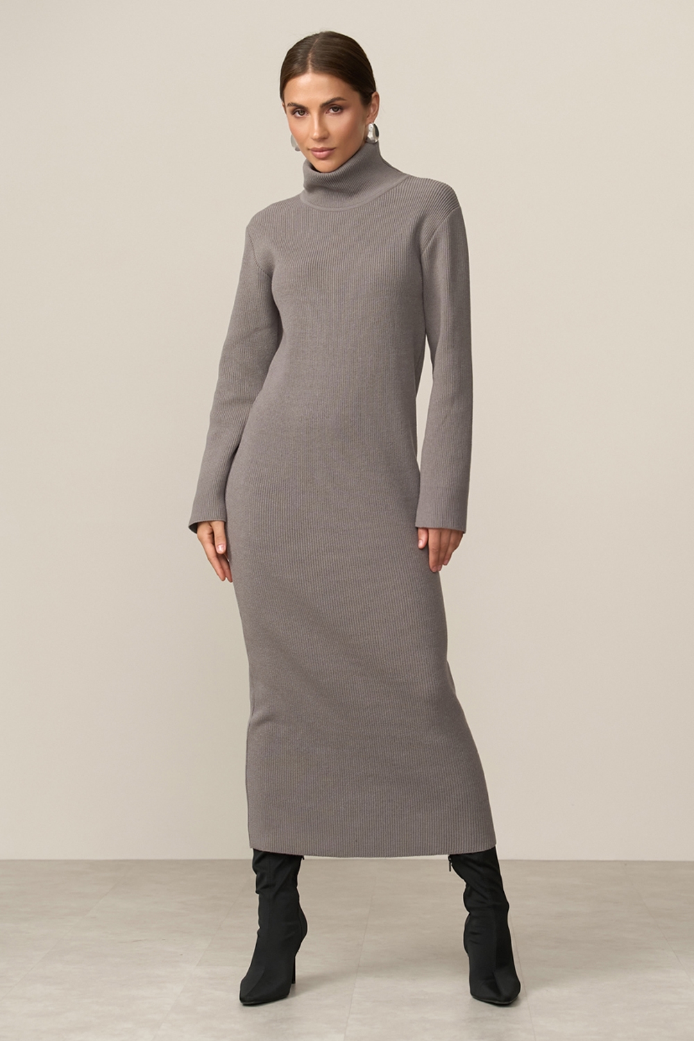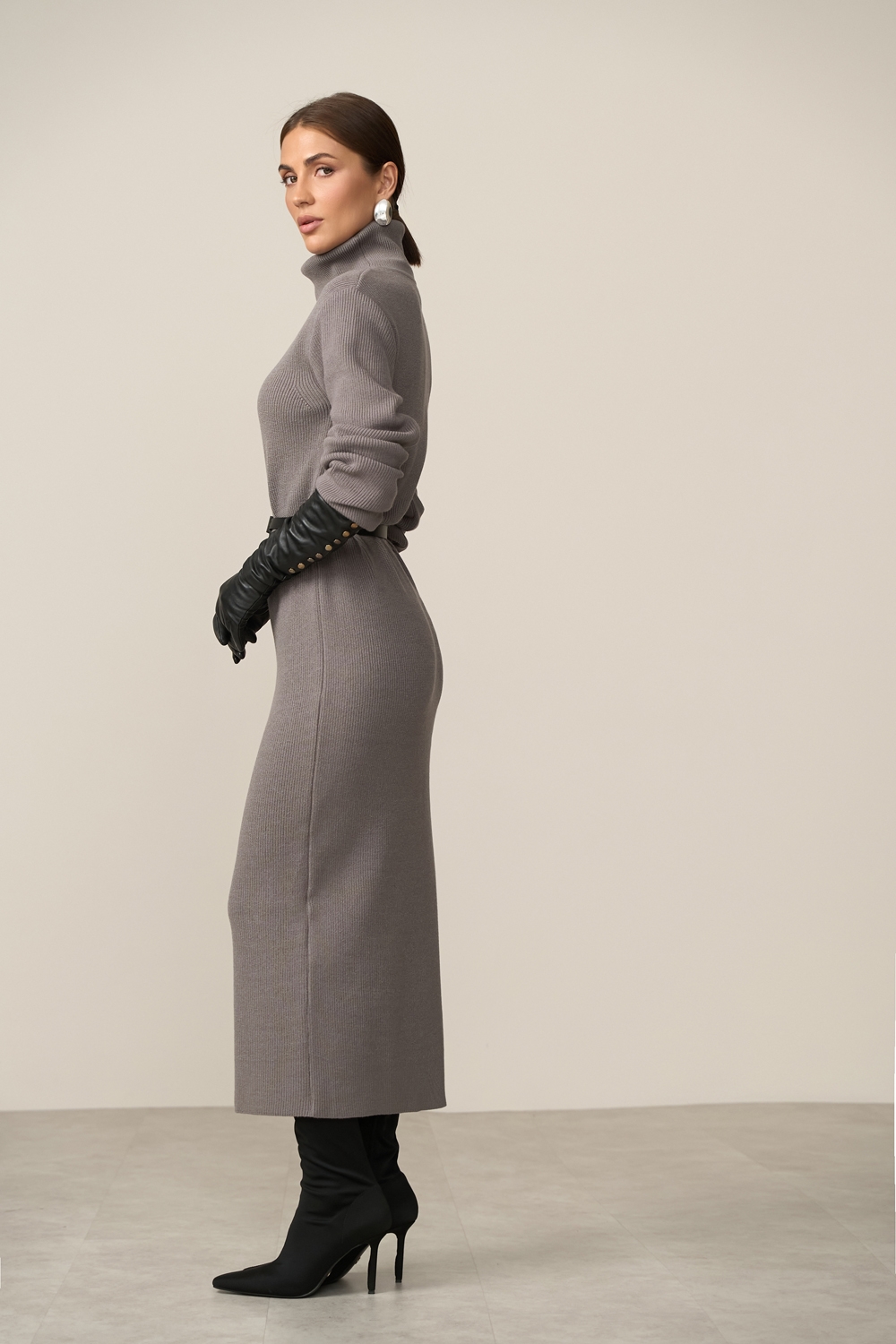 Універсальна сукня довжини міді виконана у стабільному переплетенні, середньої щільності із пряжі з включенням модалу та шовку.