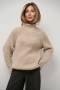 Елегантна сукня міді довжини, виконана з напіввовняної пряжі щільним, стабільним плетінням. Мінімалістичний орнамент попереду додає вишуканості. Комір-стійка ніжно огортає шию.