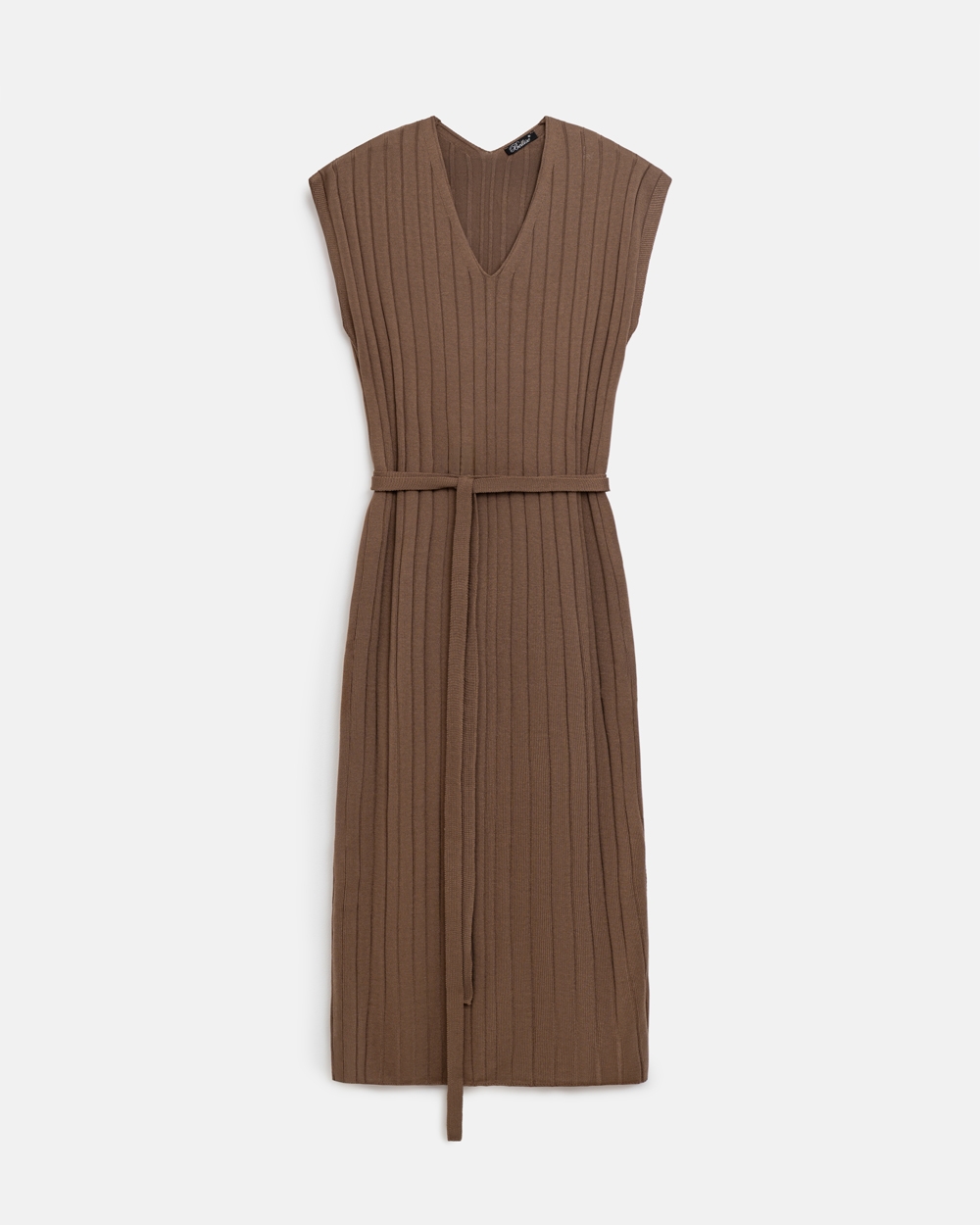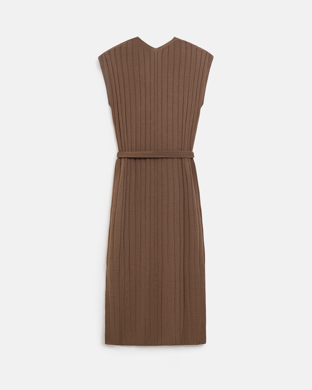 Стильна сукня прямого силуету довжини максі. Модель виготовлена з шовковистої, м'якої віскозної пряжі фактурним візерунком у вертикальну смужку. Пояс у комплекті.