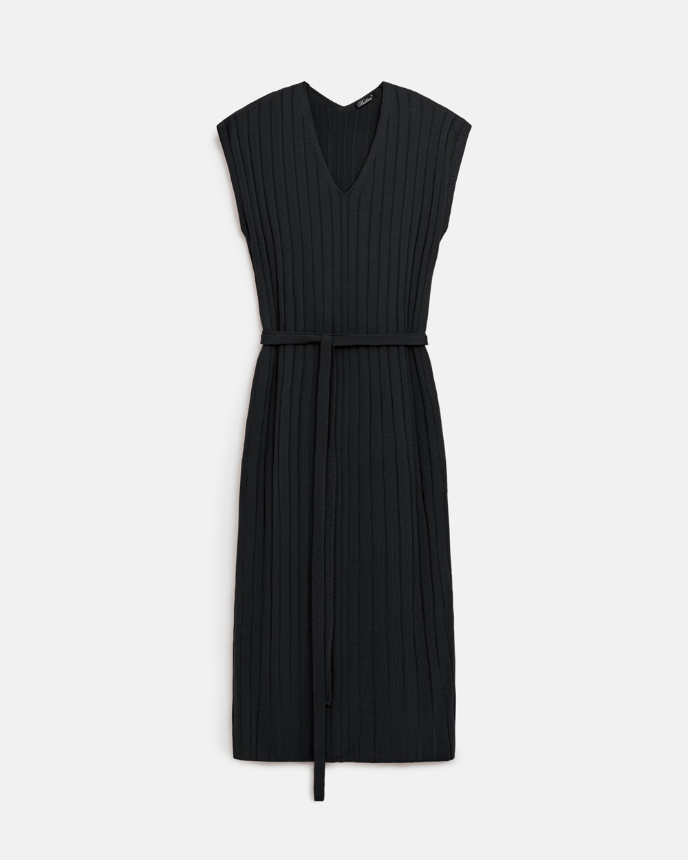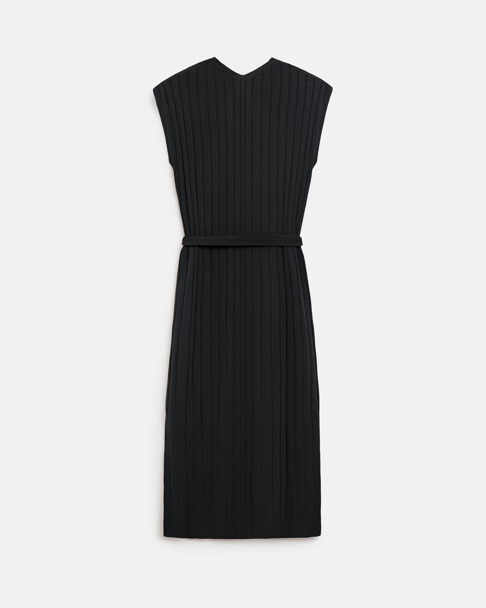 Стильна сукня прямого силуету довжини максі. Модель виготовлена з шовковистої, м'якої віскозної пряжі фактурним візерунком у вертикальну смужку. Пояс у комплекті.