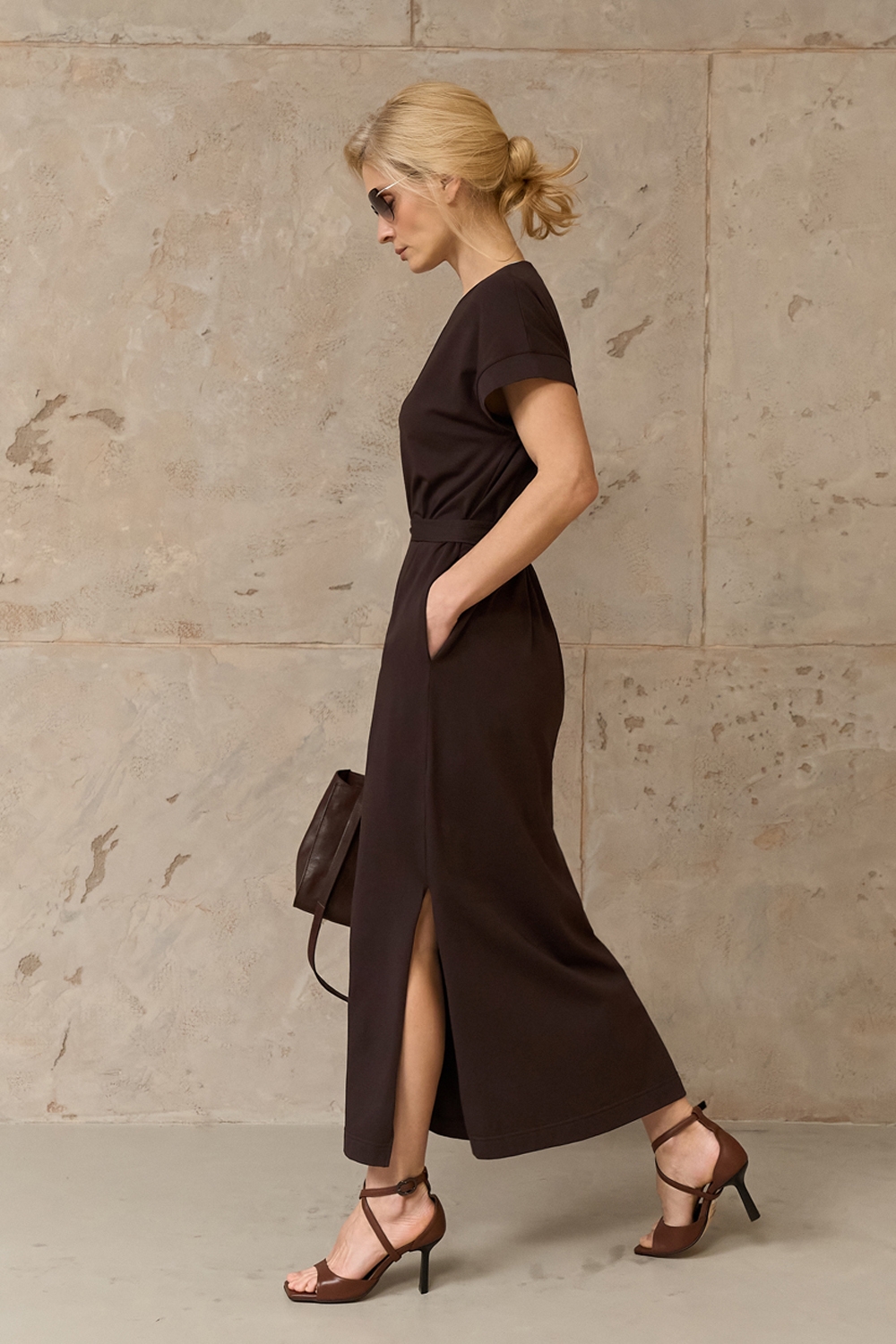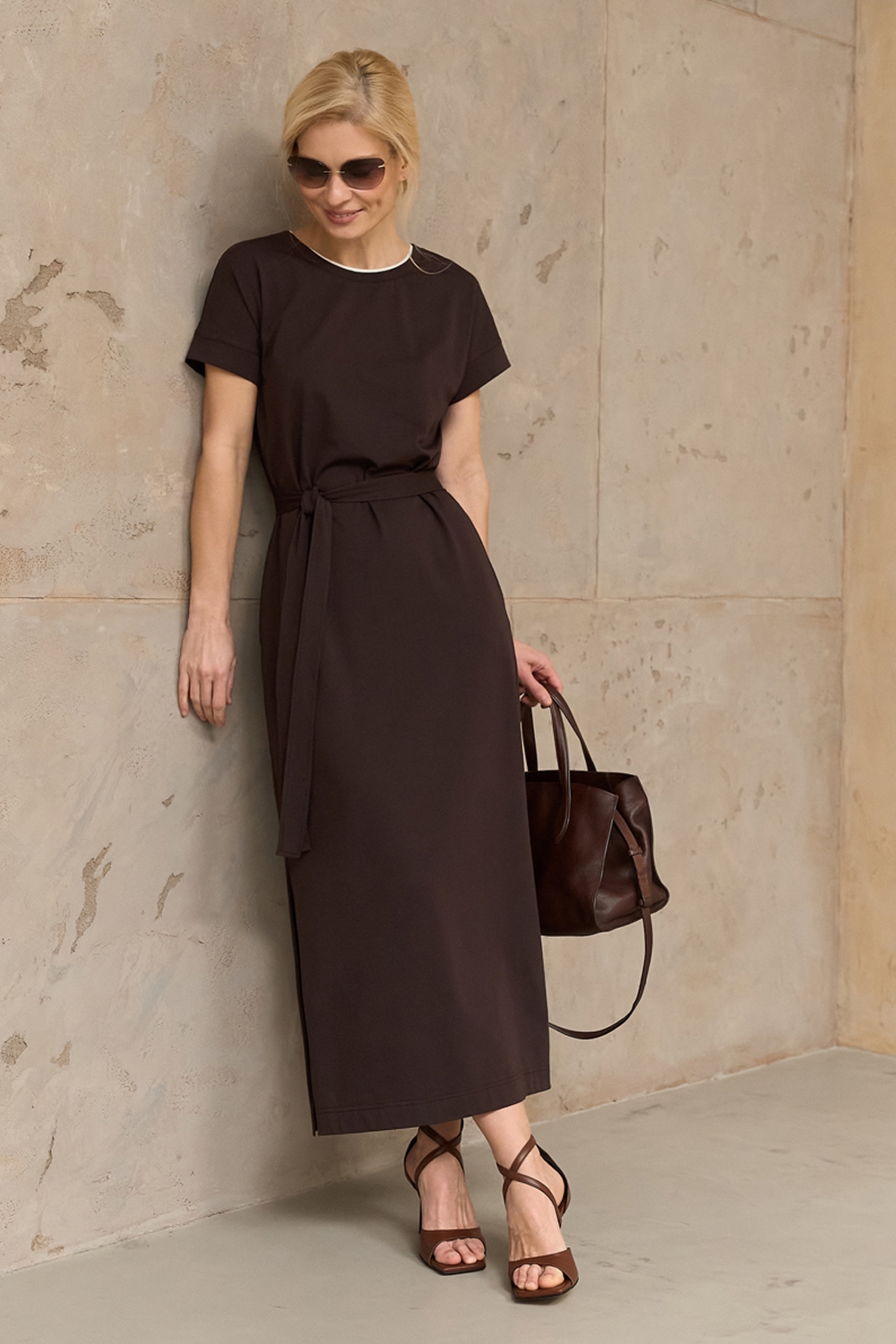 Бавовняна сукня прямого крою виготовлена із приємної до тіла тканини, що тримає форму. В бокових швах місткі кишені. Пояс у комплекті.