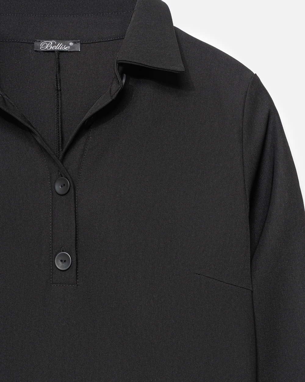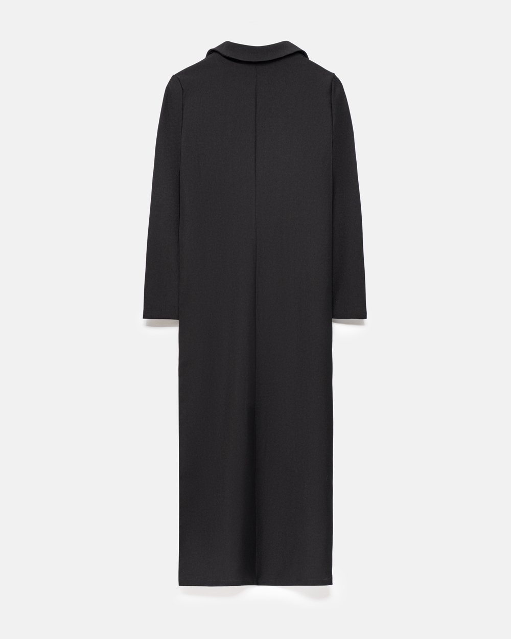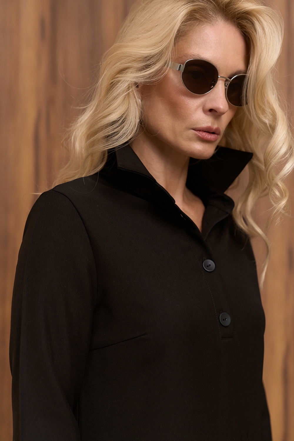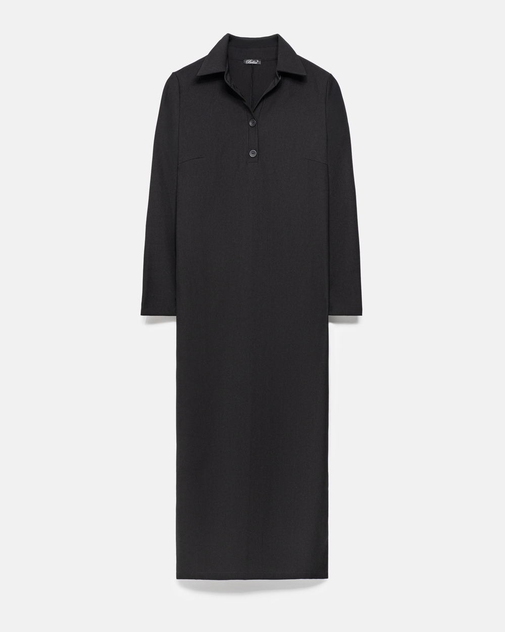 Стильна лаконічна сукня-поло виготовлена із віскозної тканини середньої щільності. Комфортний прямий силует. Довжина міді та елегантний розріз збоку додають витонченості.