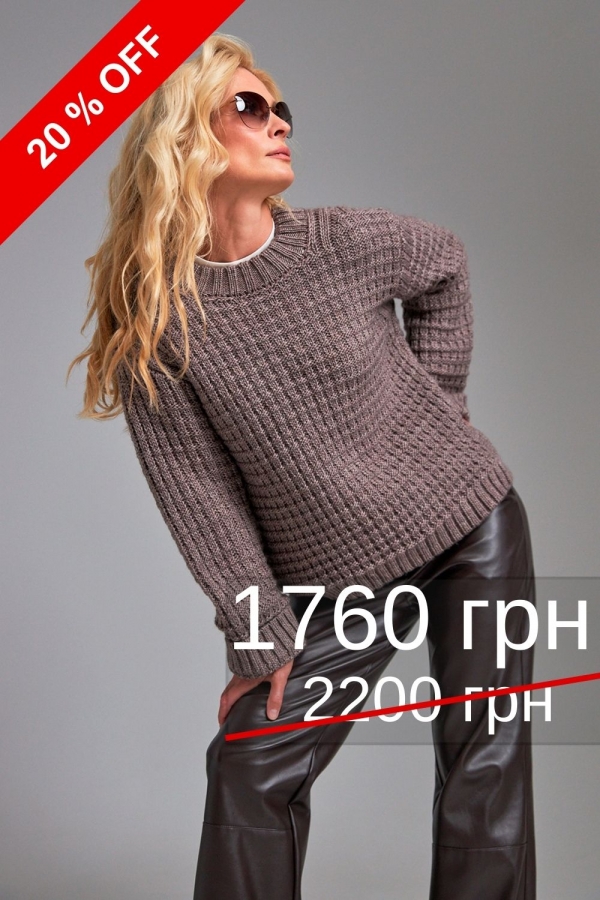 Светр з теплої вовняної пряжі. Об'ємний актуальний малюнок. Розслаблені функціональні манжети на рукавах та по низу виробу.