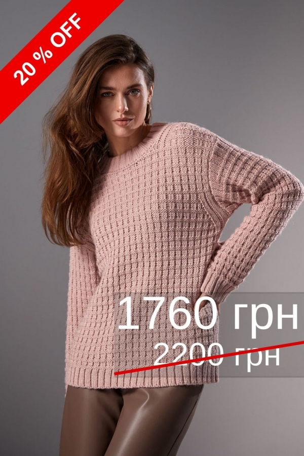 Светр з теплої вовняної пряжі. Об'ємний актуальний малюнок. Розслаблені функціональні манжети на рукавах та по низу виробу.