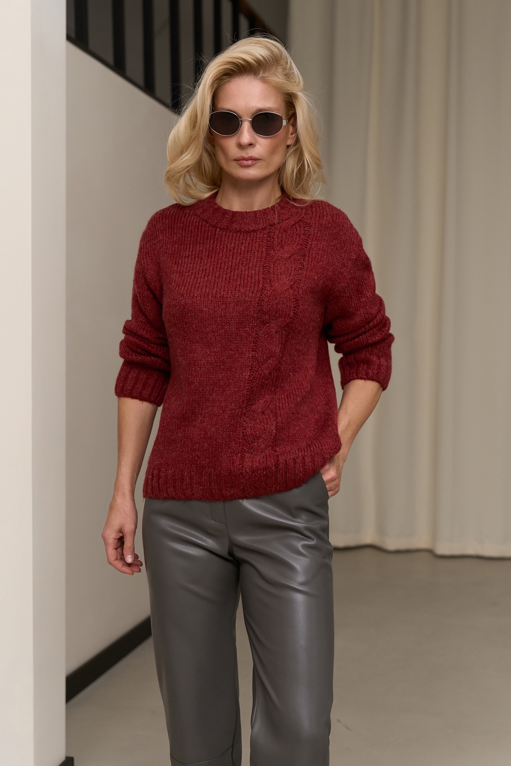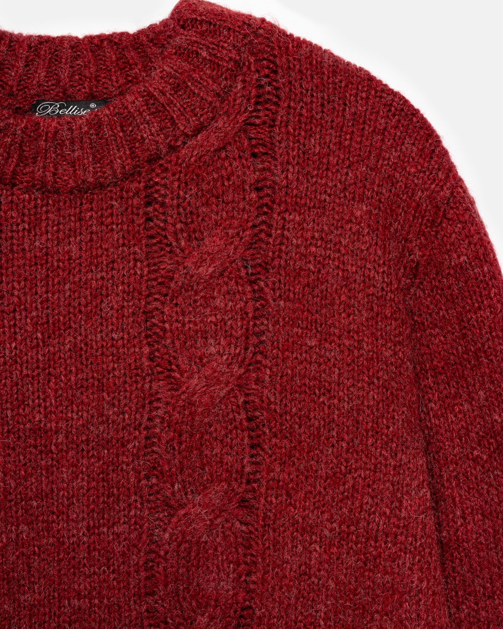 Затишний светр з ніжної вовняної пряжі. Спущена лінія плеча та комфортний рукав. Акцент виробу - вертикальний візерунок "коса".