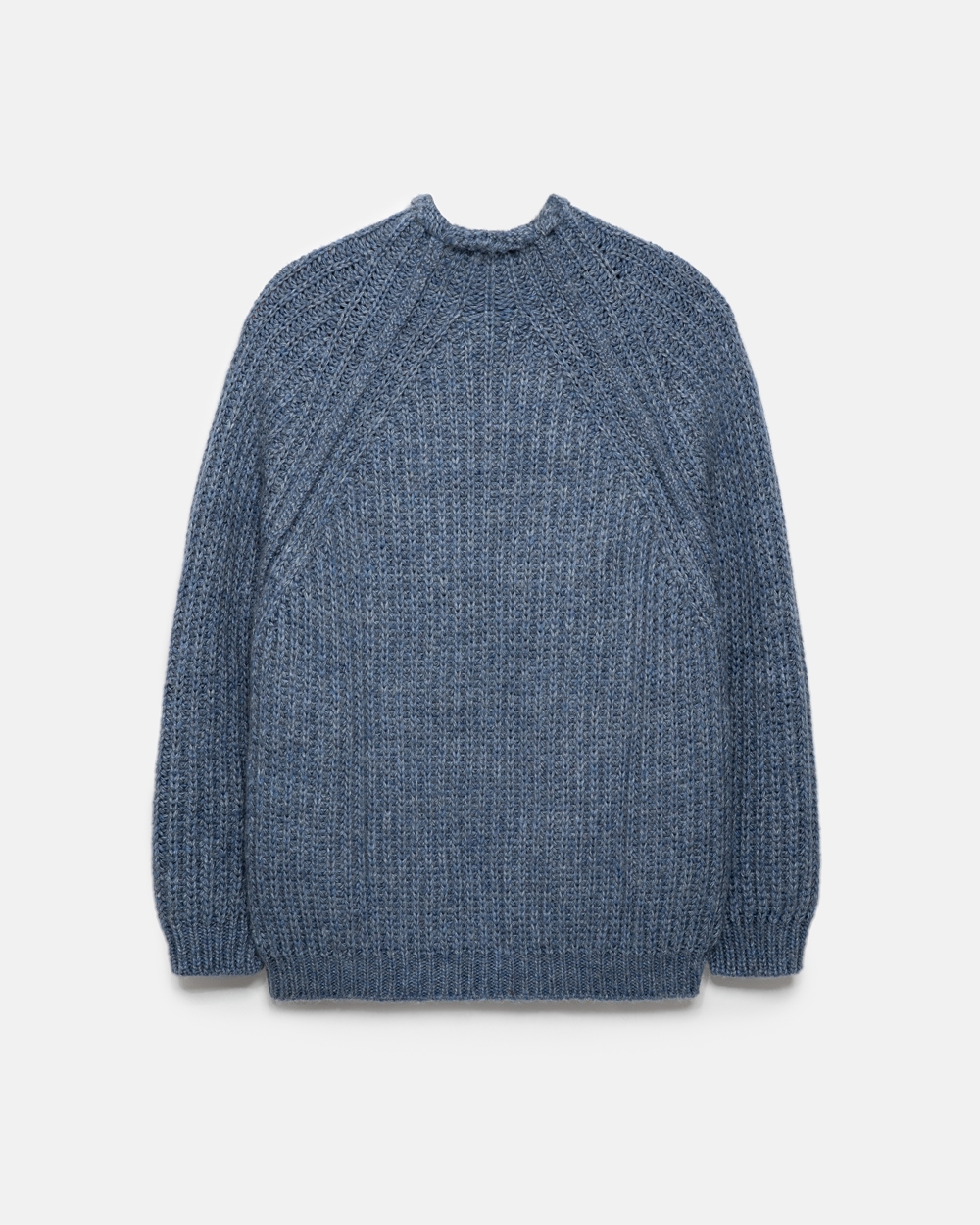 Теплий светр виготовлений із пряжі з високим вмістом вовни мериноса та альпаки, м'який та приємний до тіла. Об'ємна в'язка додає стилю та затишку. Комфортний комір-стійка та рукав-реглан.