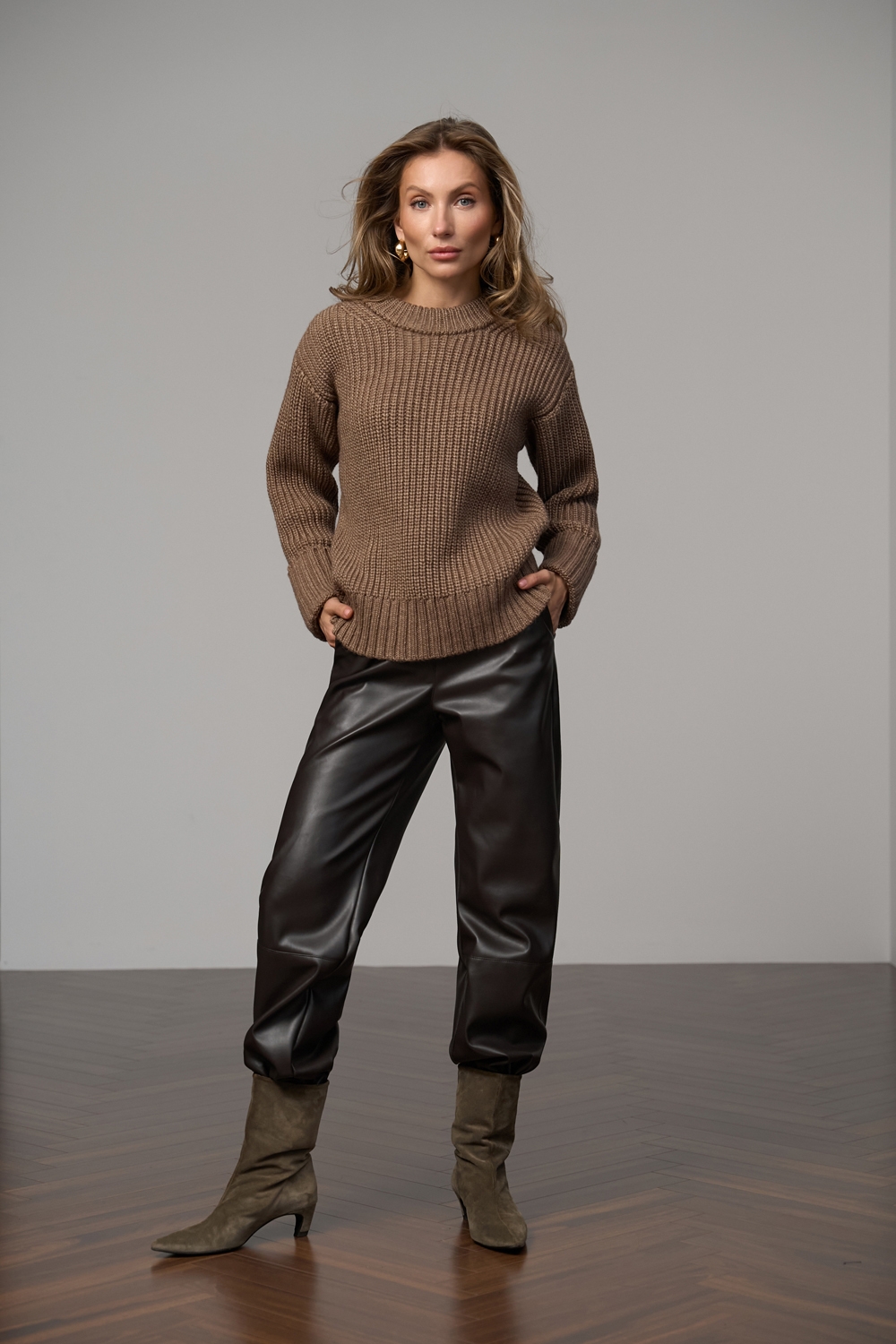 Теплий та зручний светр об'ємної в'язки. Виготовлений з преміальної пряжі, що містить вовну мериноса та альпаки.